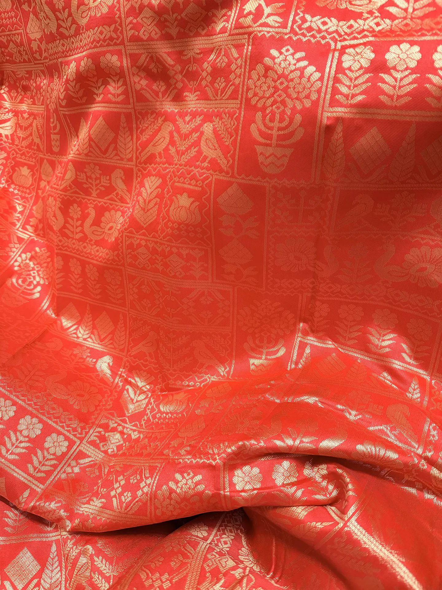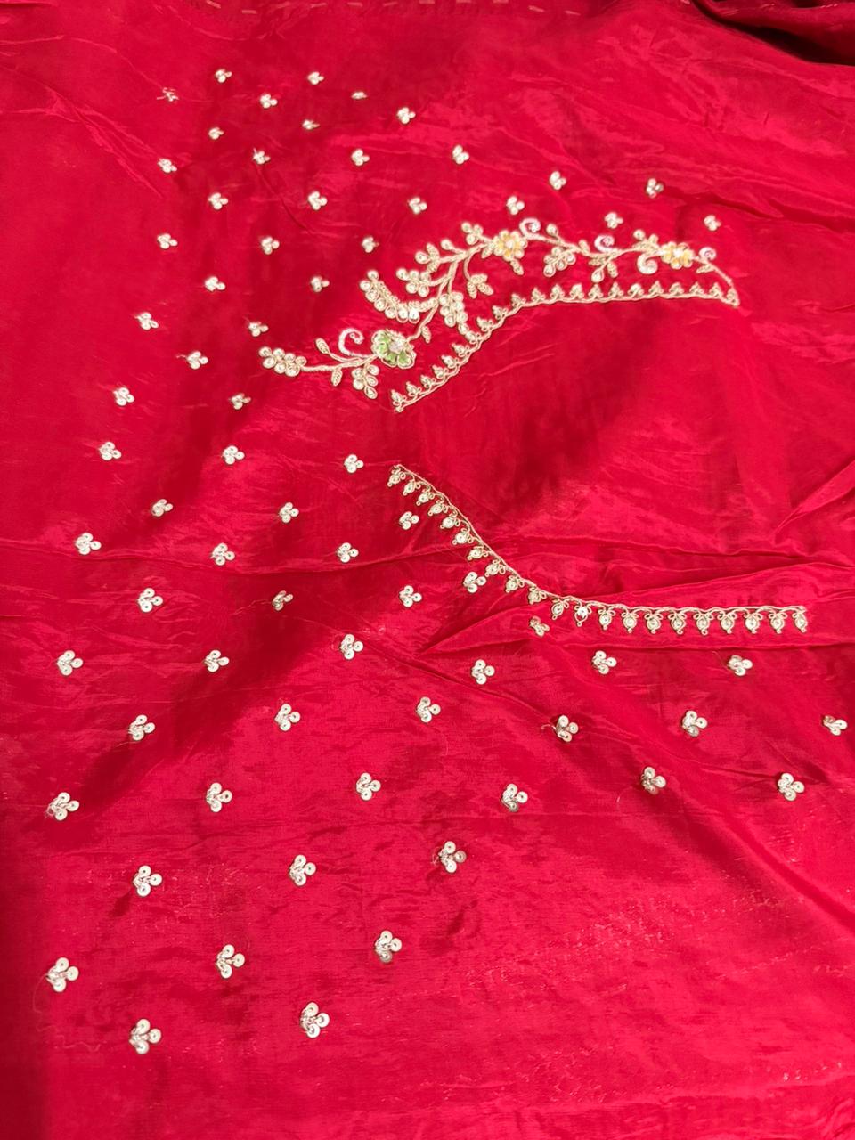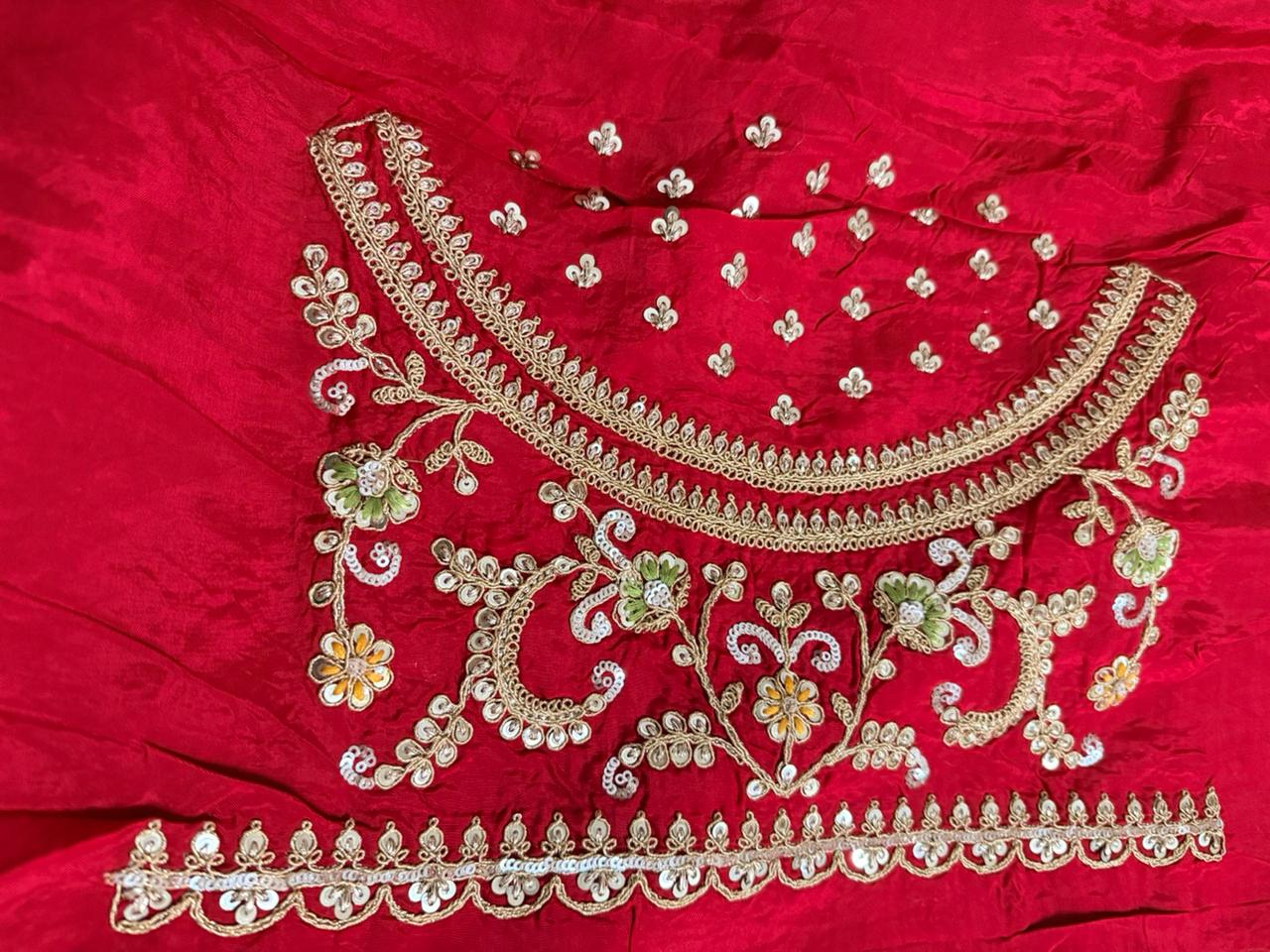 The saree is amazing. Shiny. Very neat finishing, and the perfect red for weddings.