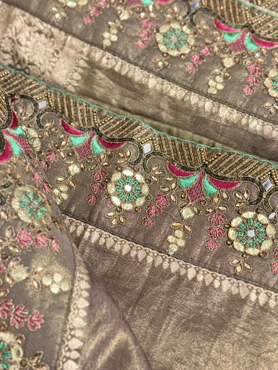 Wore the beautiful saree on my brother's wedding and everyone cant stop praising. This made me write this review. The stone work, the embroidery, the mirror work, it has so much luxury charm. The blouse you made fitted me perfectly. Cant believe I got such a fit online. Much love 🙂