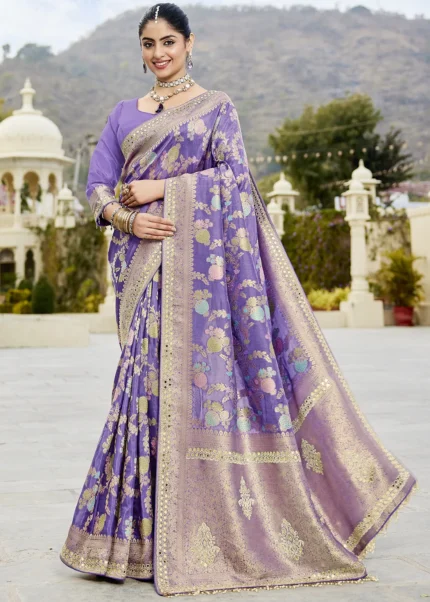 Royal Purple Banarasi Saree with Embroidered Blouse