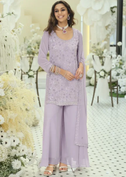 Lavender Georgette Palazzo Suit with Embroidery and Cutdana Work