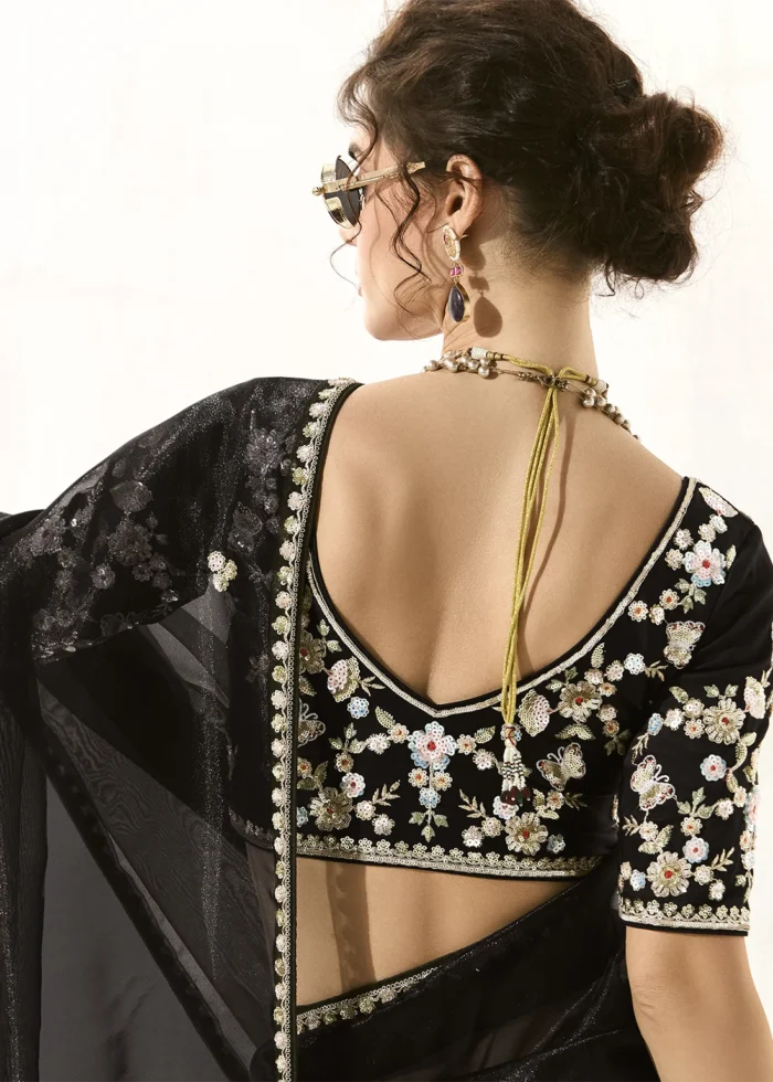 Black Embroidered Organza Saree with Embroidered Blouse