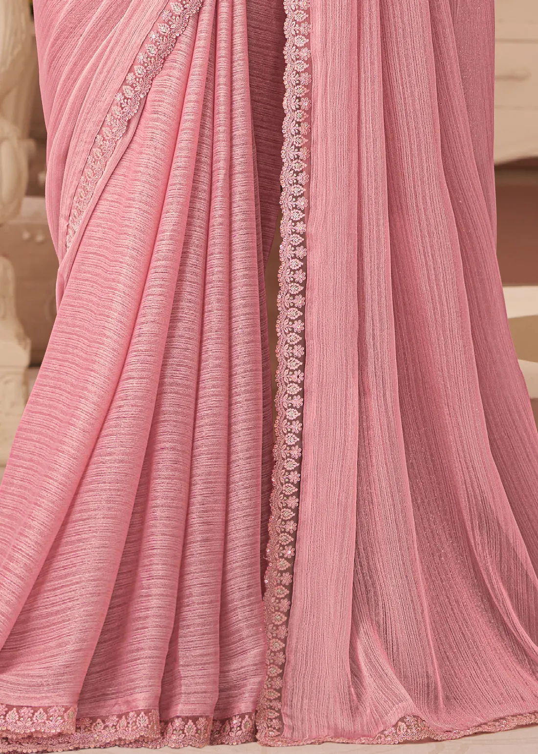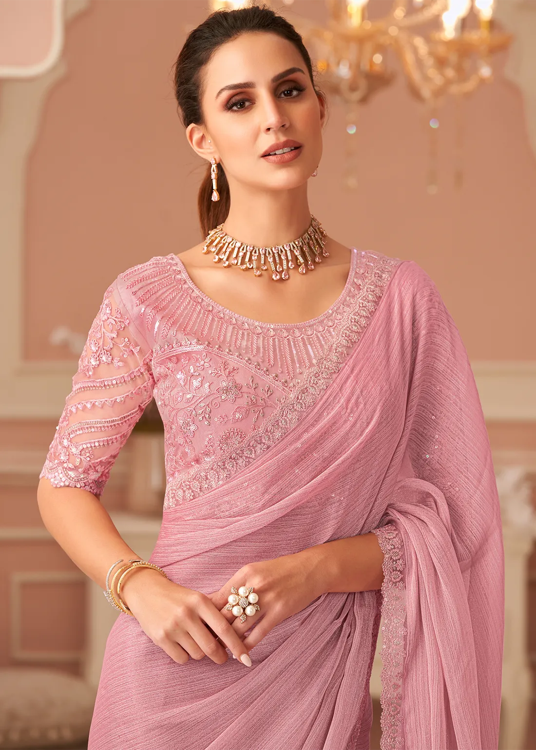Blush Pink Embroidered Chiffon Saree with Embroidered Blouse