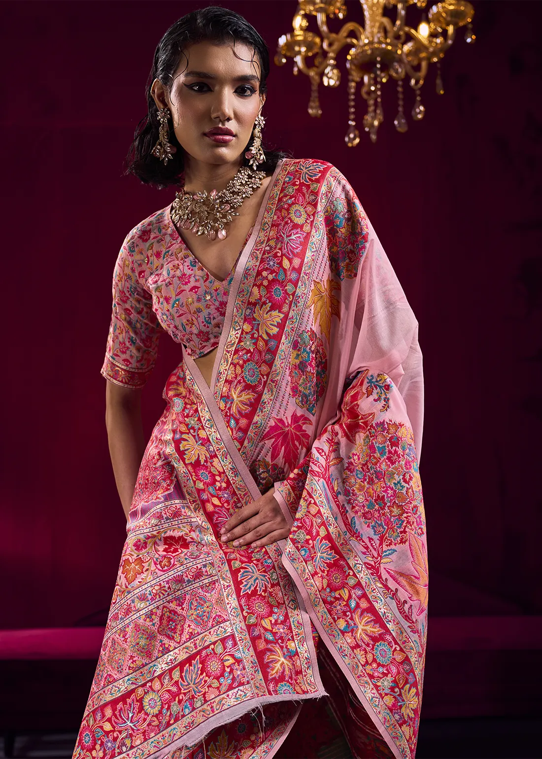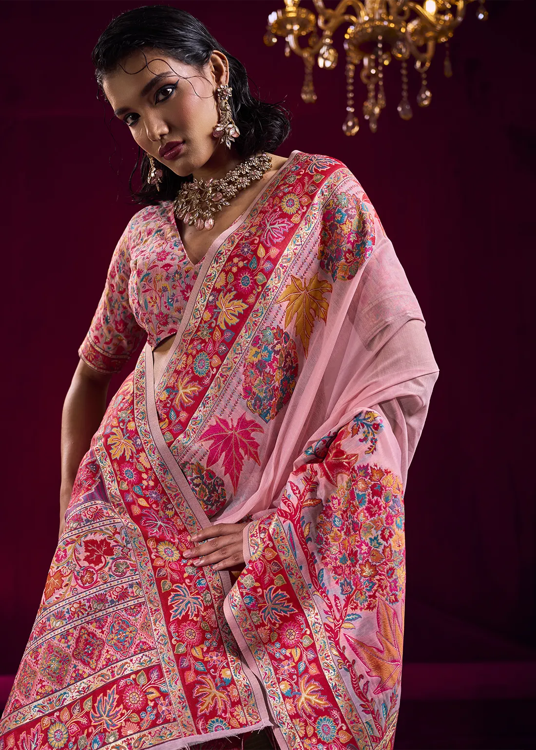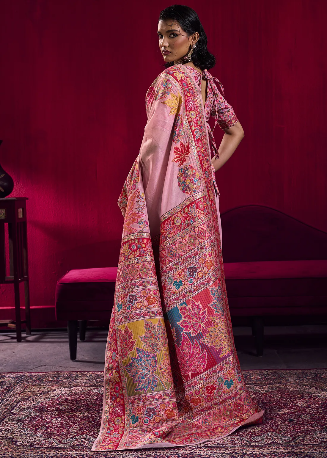 Blush Pink Kashmiri Jamawar Pashmina Saree