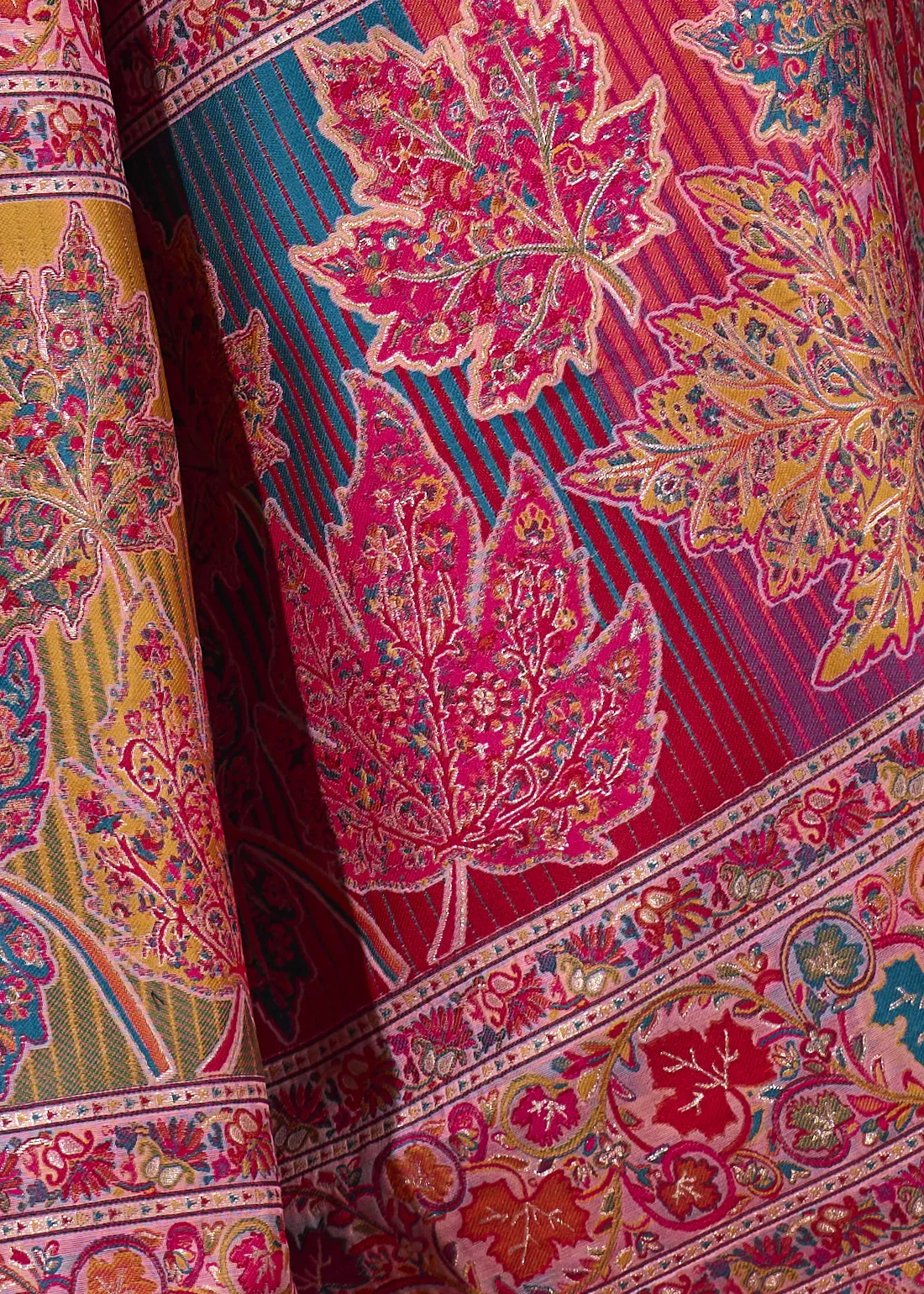 Carnation Pink Kashmiri Jamawar Woven Silk Saree