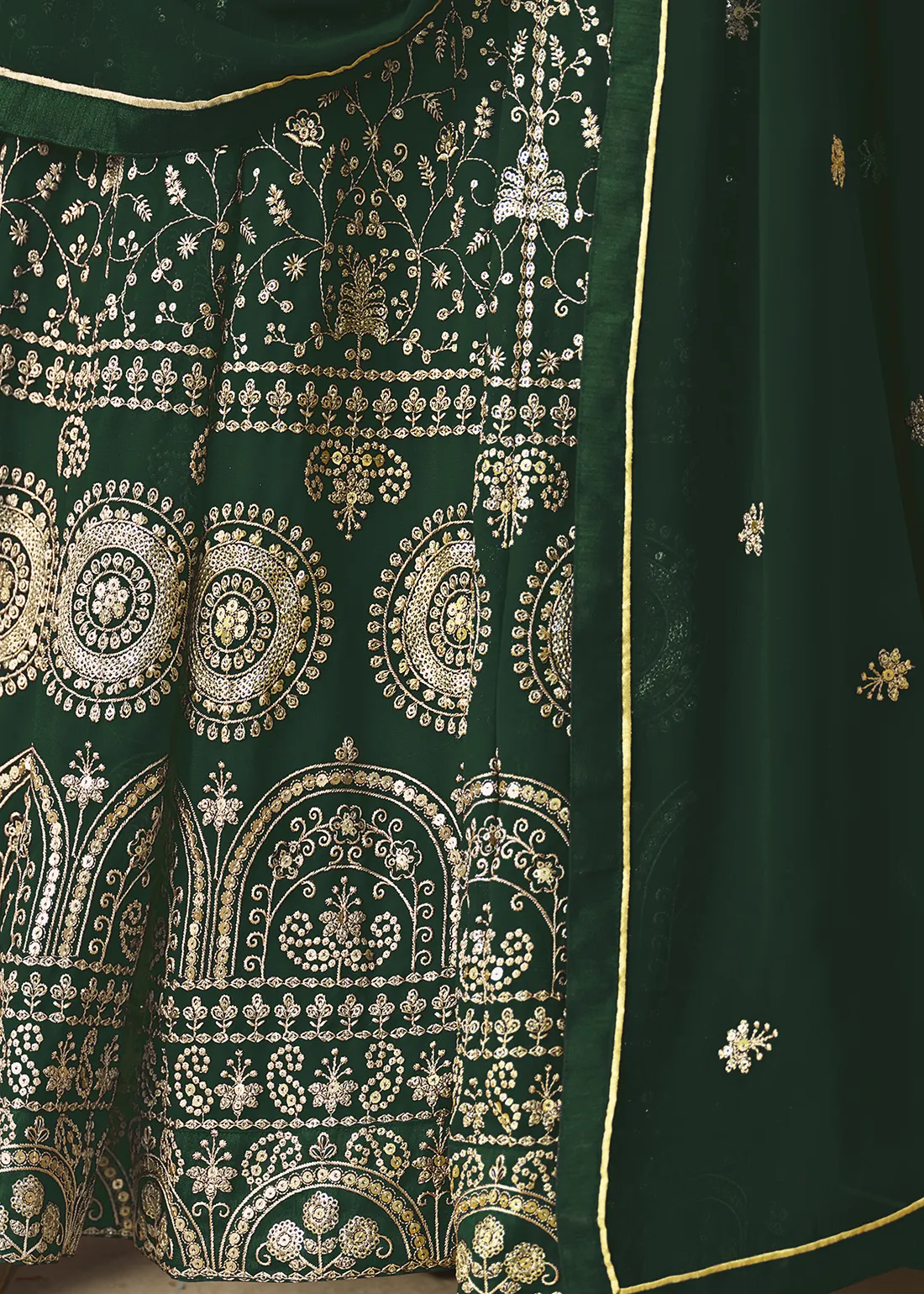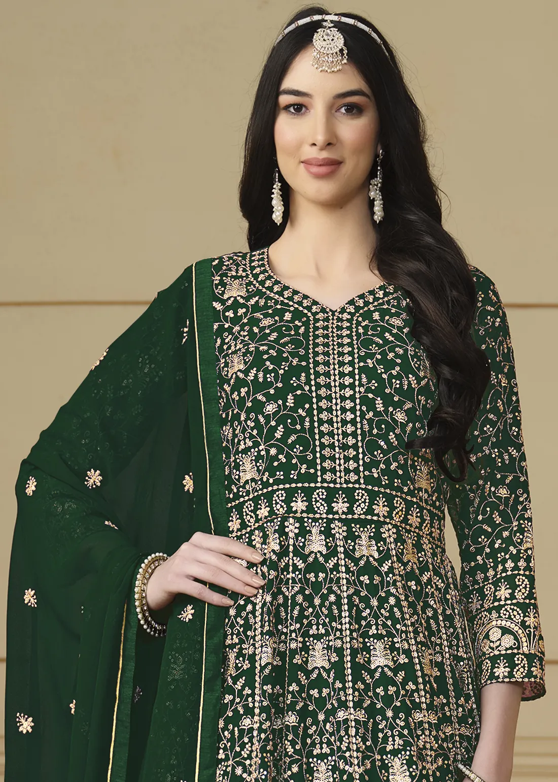 Bottle Green Embroidered Georgette Anarkali Gown