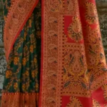 Bottle Green Kashmiri Jamawar Pashmina Saree with Red Blouse