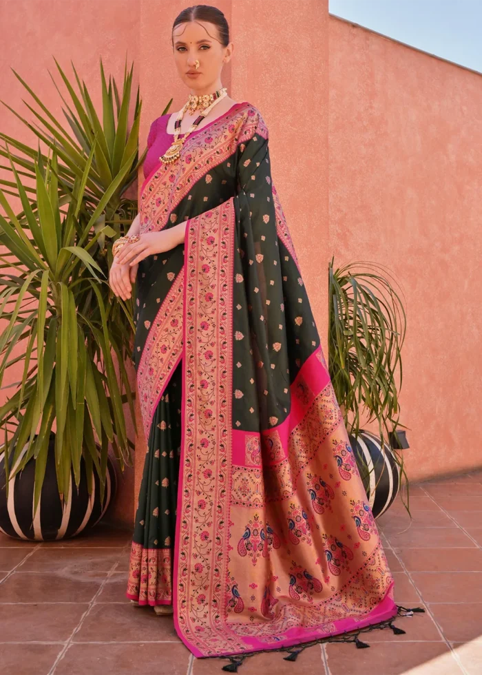 Bottle Green Paithani Silk Saree with Pink Blouse