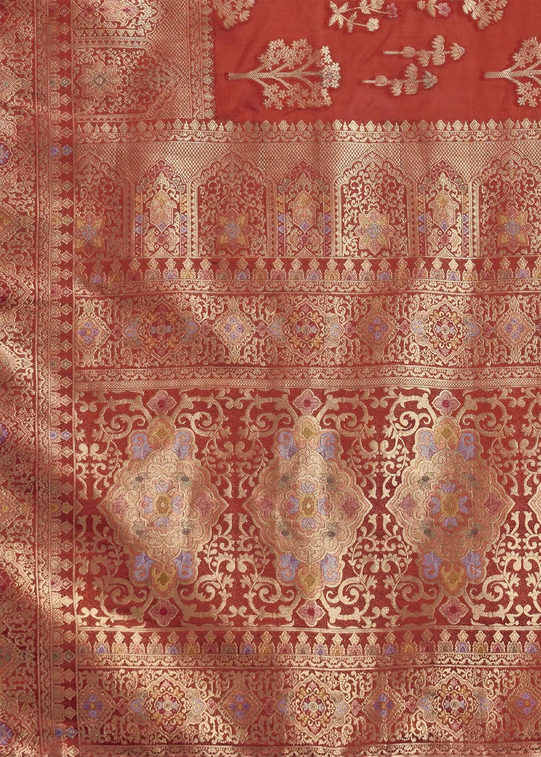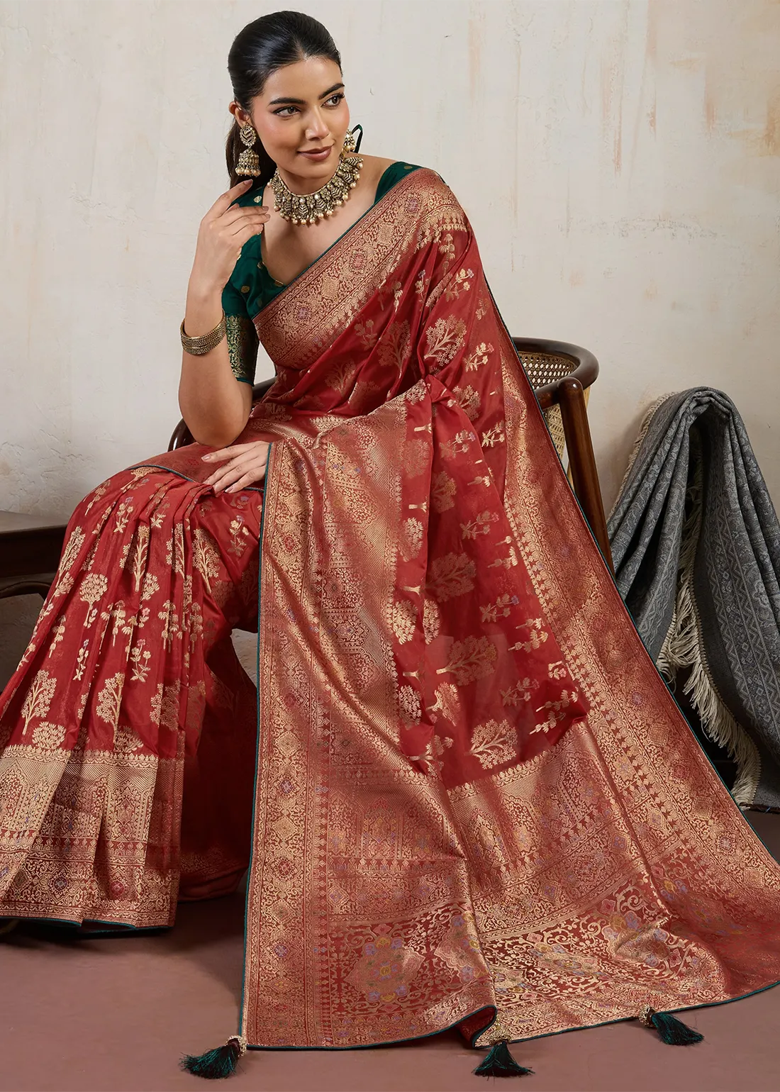 Red and Orange Rangkaat Handloom Banarasi Saree