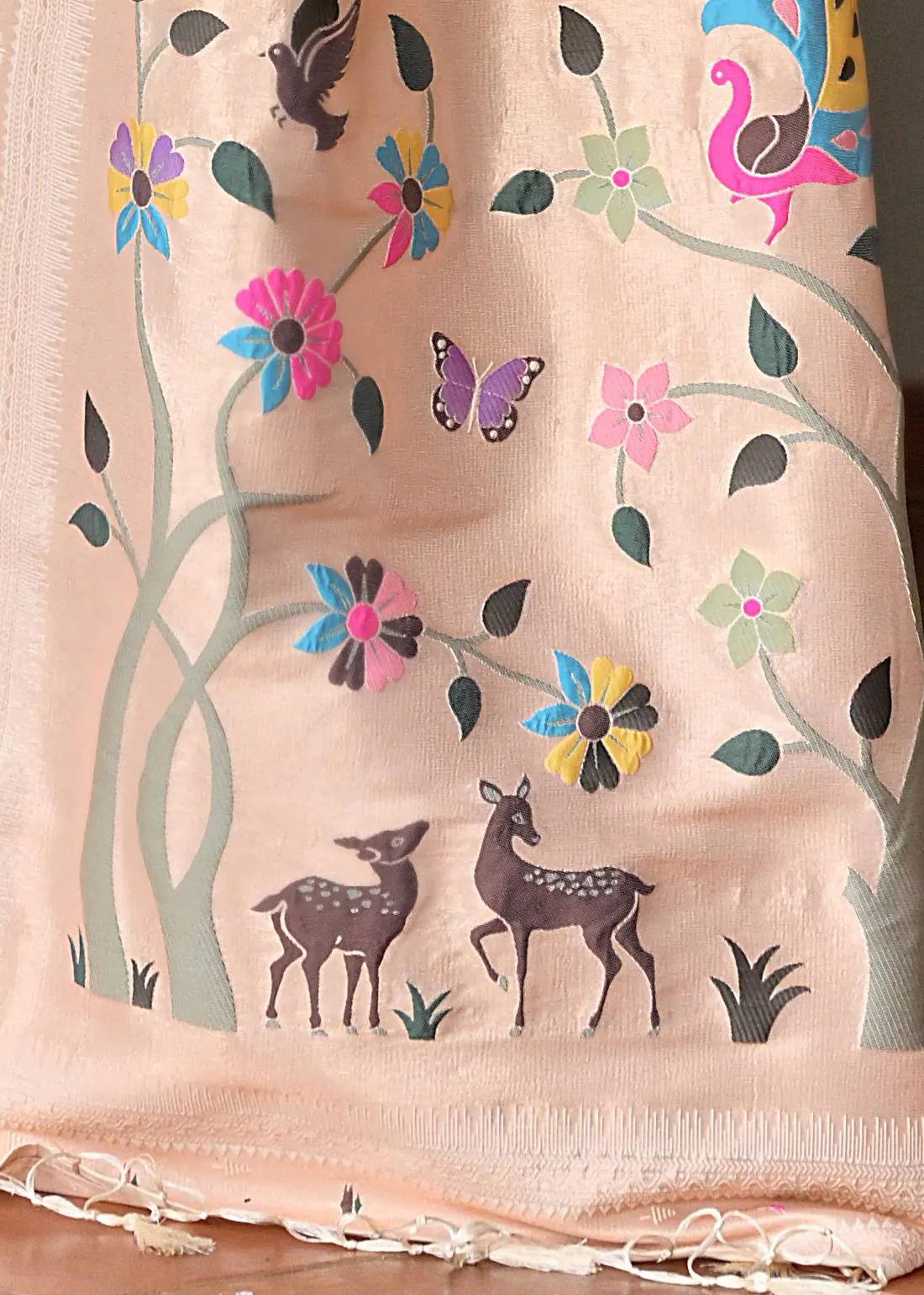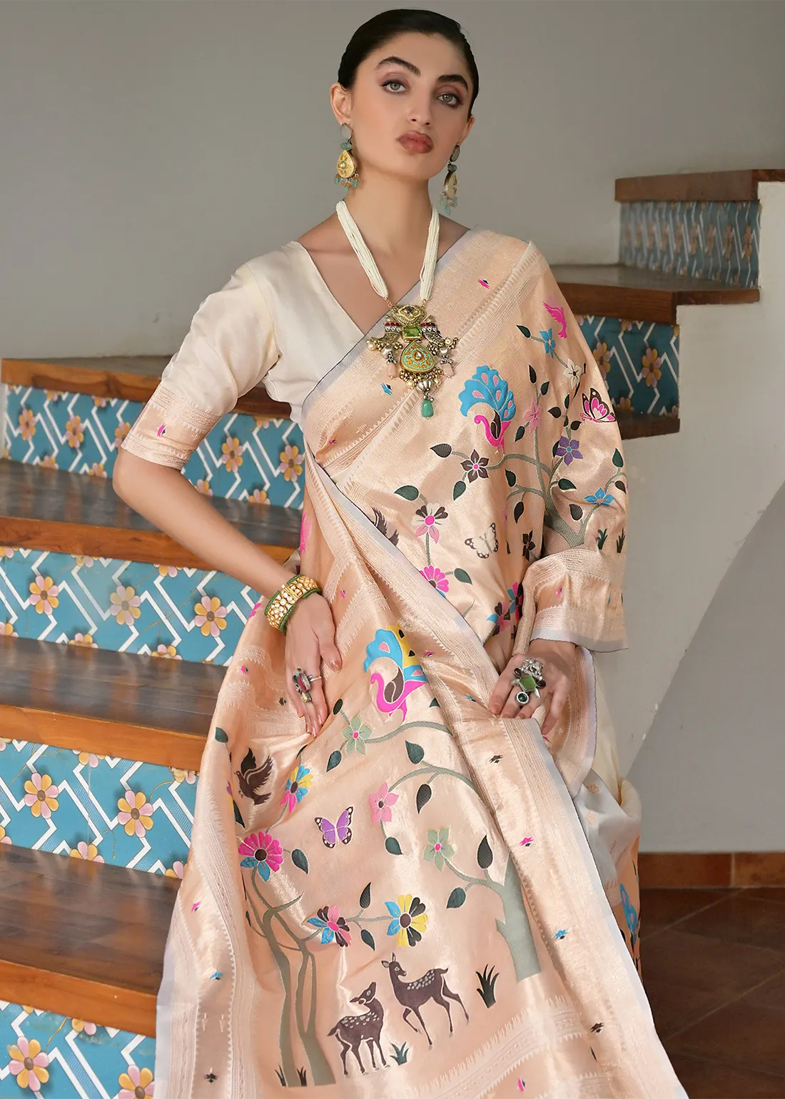 Cream Paithani Silk Saree with Zari Woven Motifs