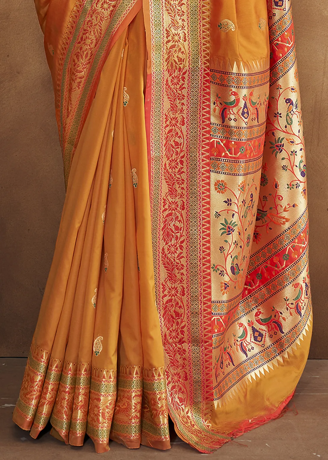 Golden Yellow Paithani Tissue Silk Saree