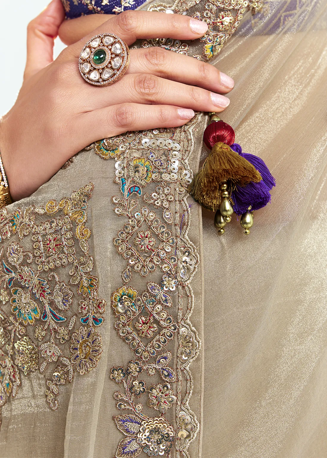 Embroidered Royal Purple Chiffon Saree with Designer Blouse