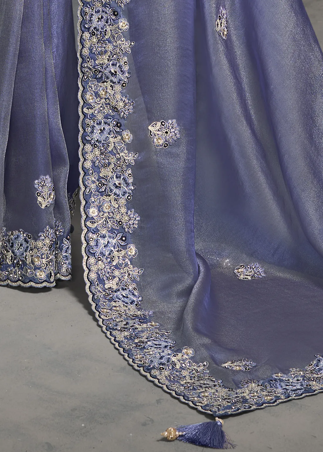 Embroidered Lavender Tissue Silk Saree with Beads & Stone Work
