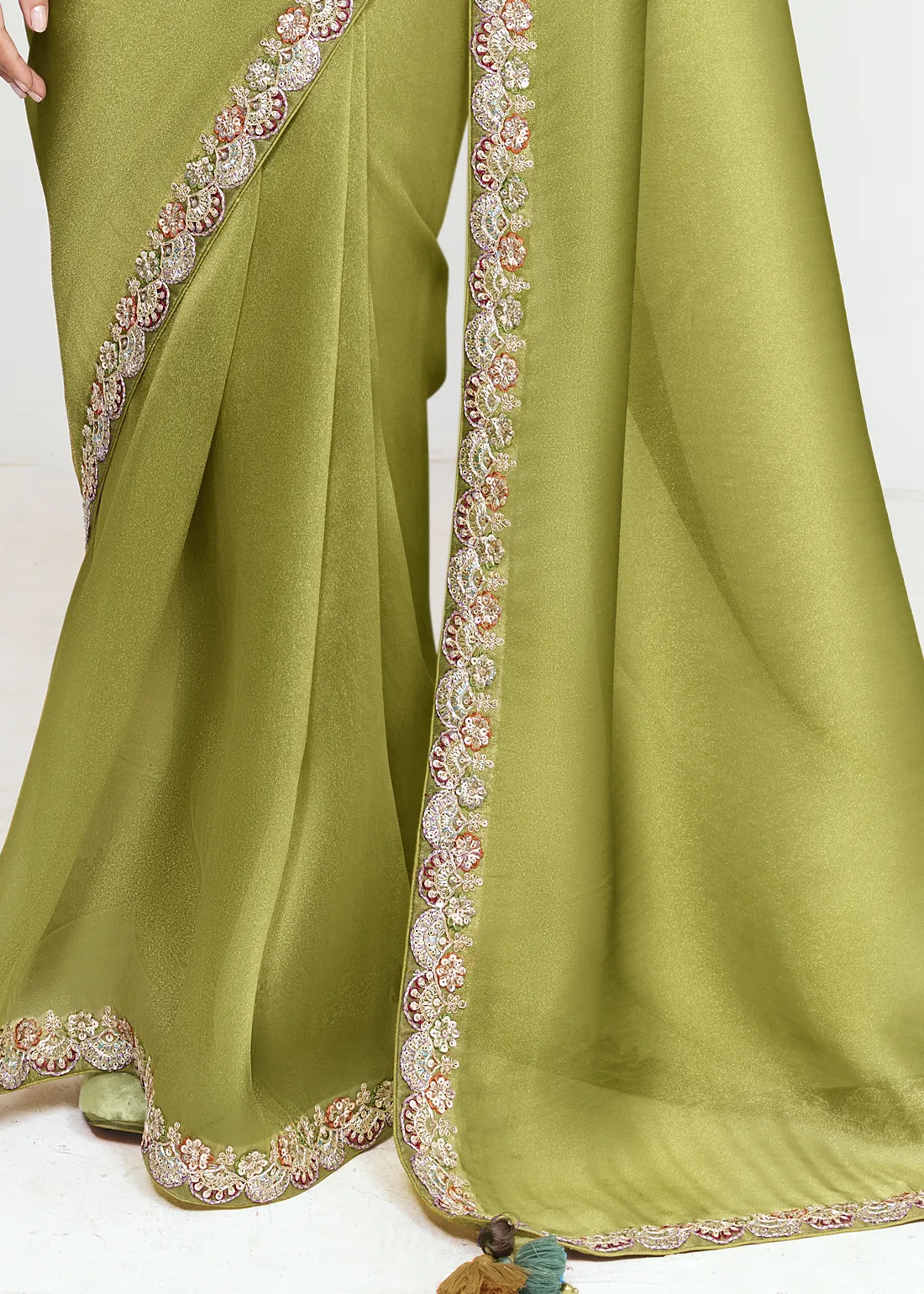 Ornamentation: Hand-made tassels on Pallu.
