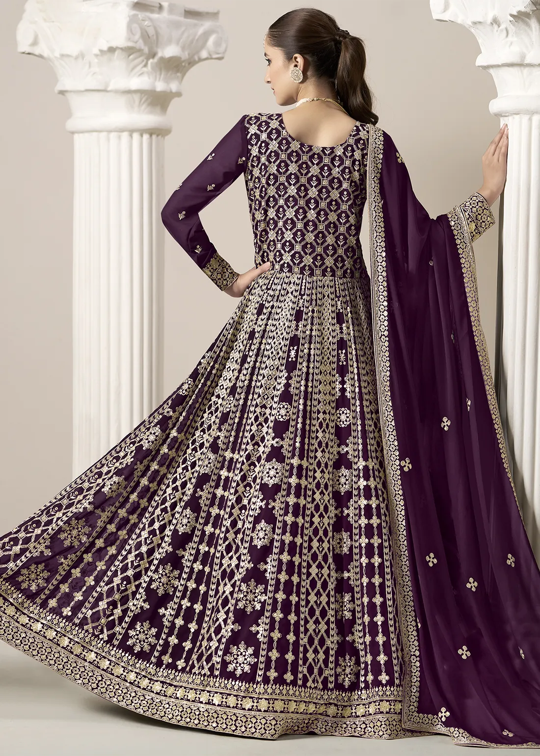 Wine Embroidered Georgette Anarkali Gown