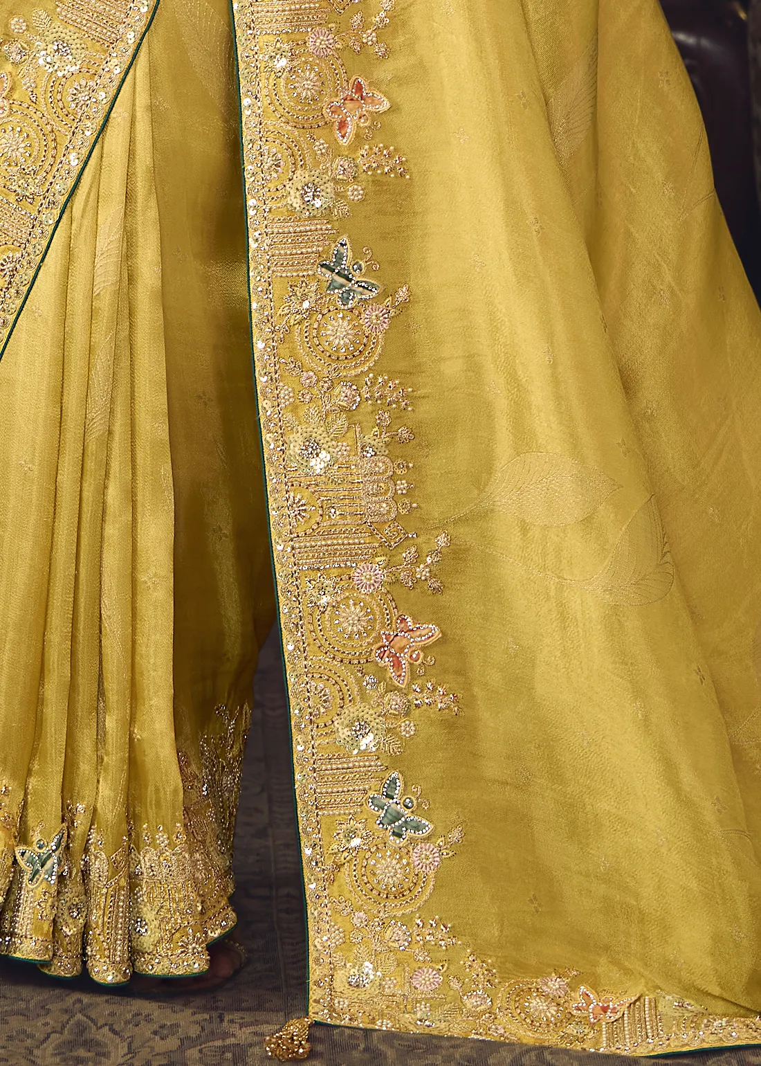 Golden Yellow Kanjivaram Silk Saree with Embroidery Work