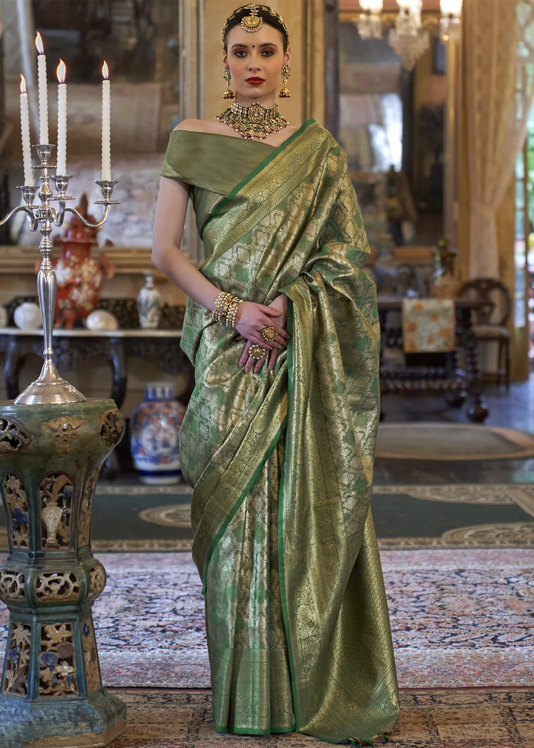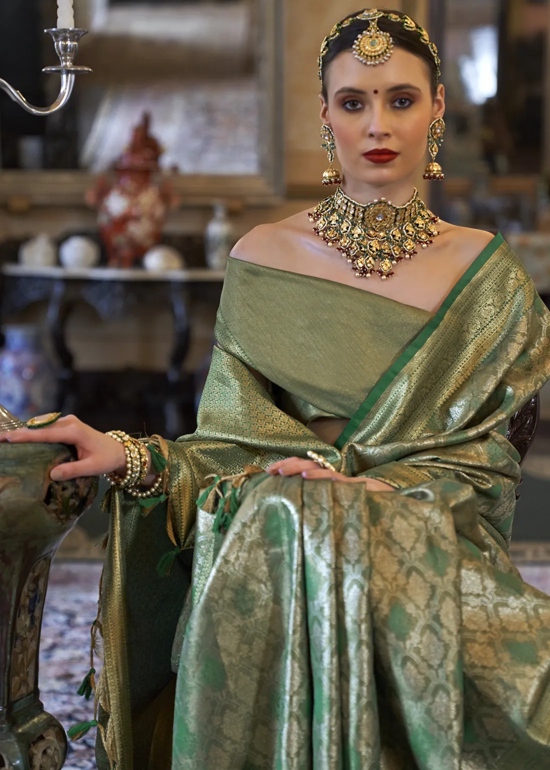 Emerald Green Kanjivaram Silk Saree with Zari Weaving