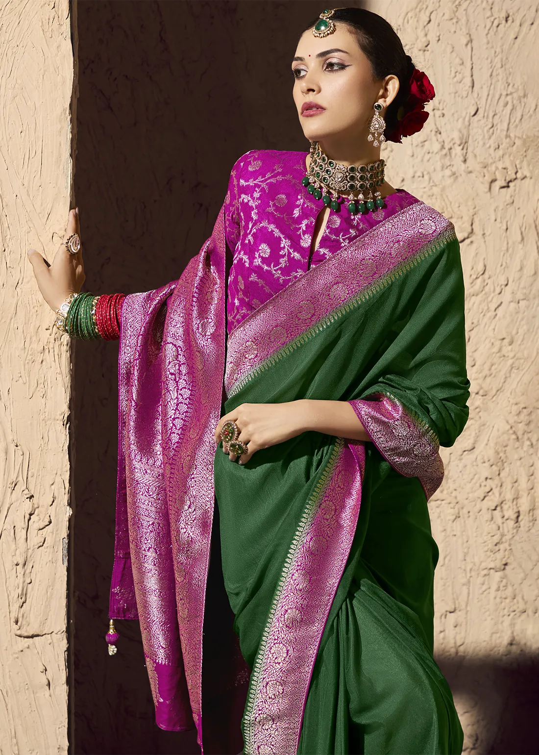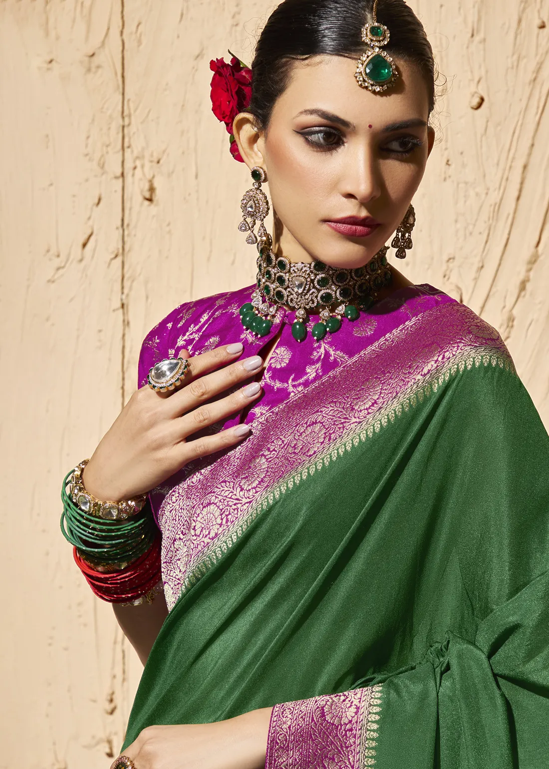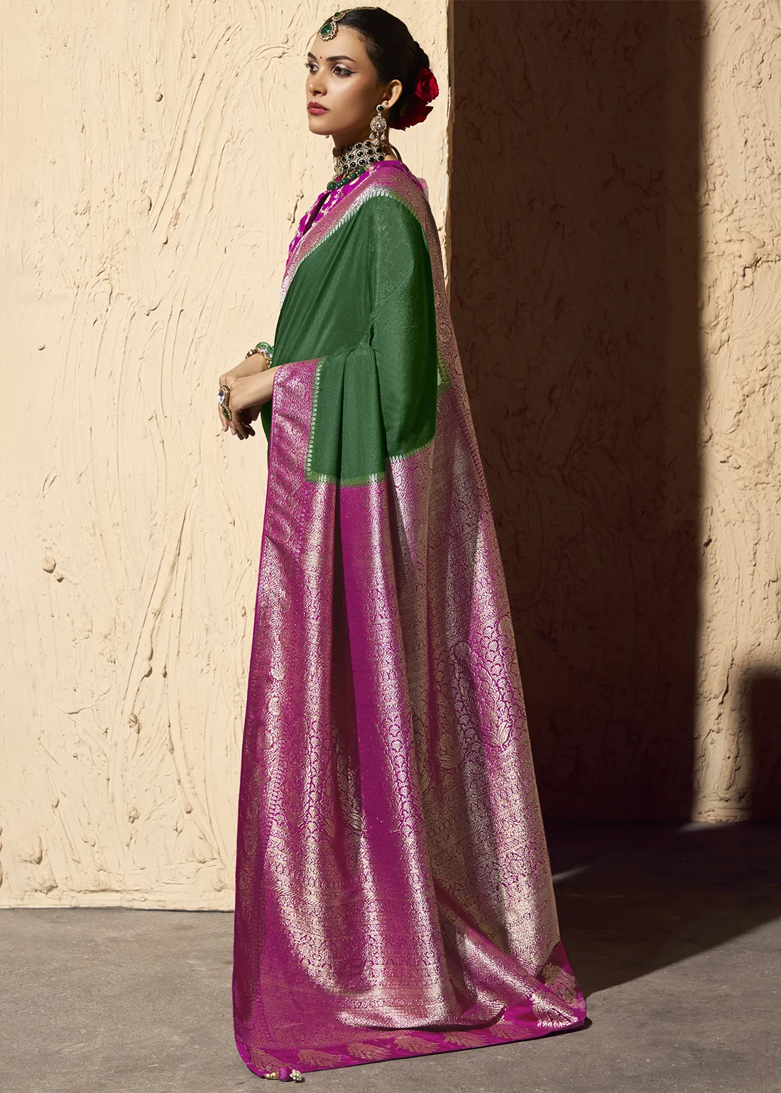 Forest Green Georgette Banarasi Saree with Golden Zari