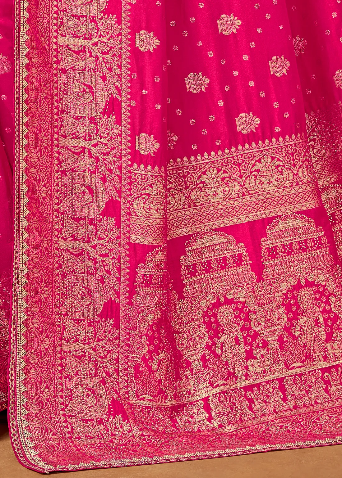 Fuchsia Banarasi Silk Saree with Stone Work
