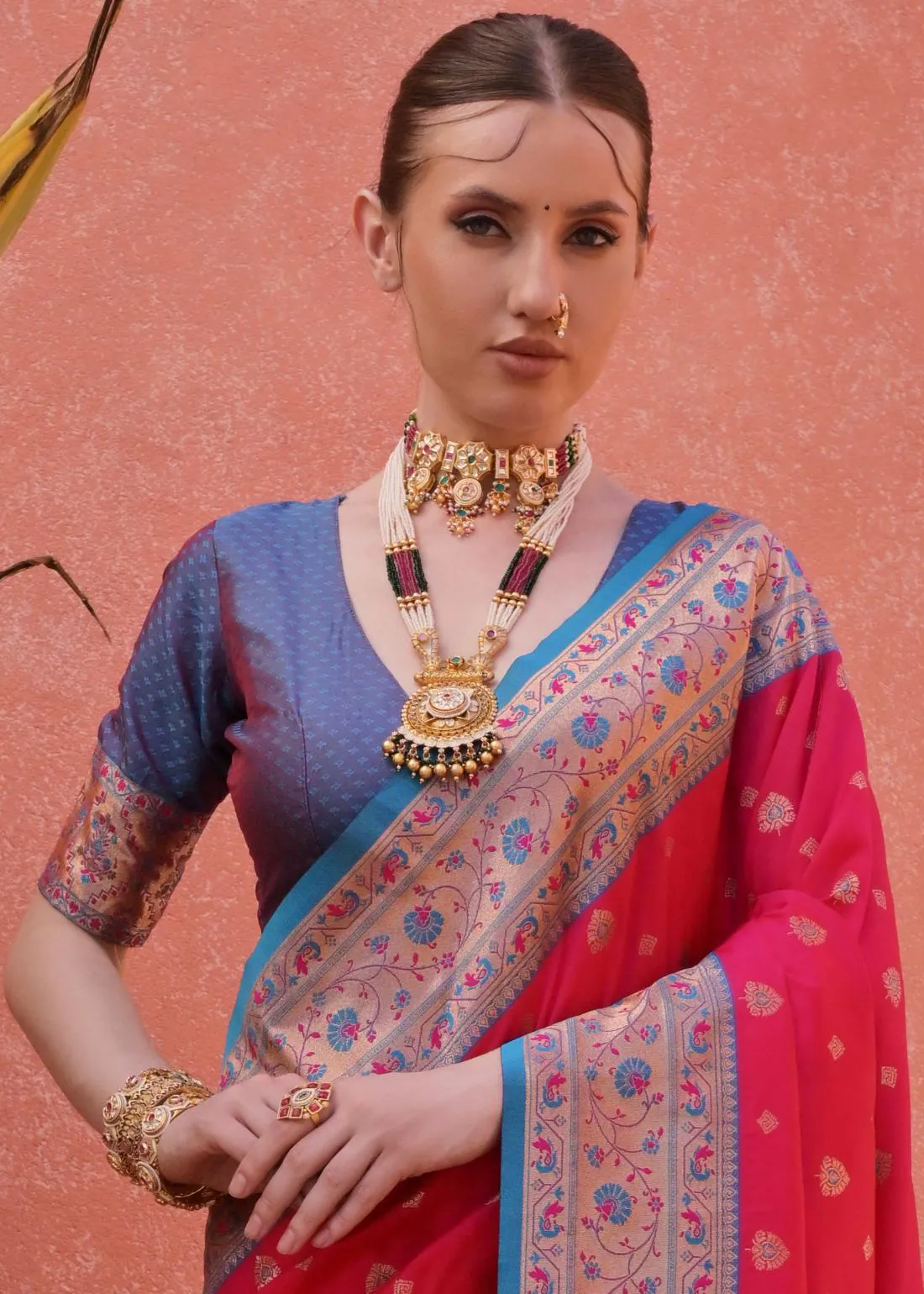 Fuchsia Paithani Silk Saree with Blue Blouse