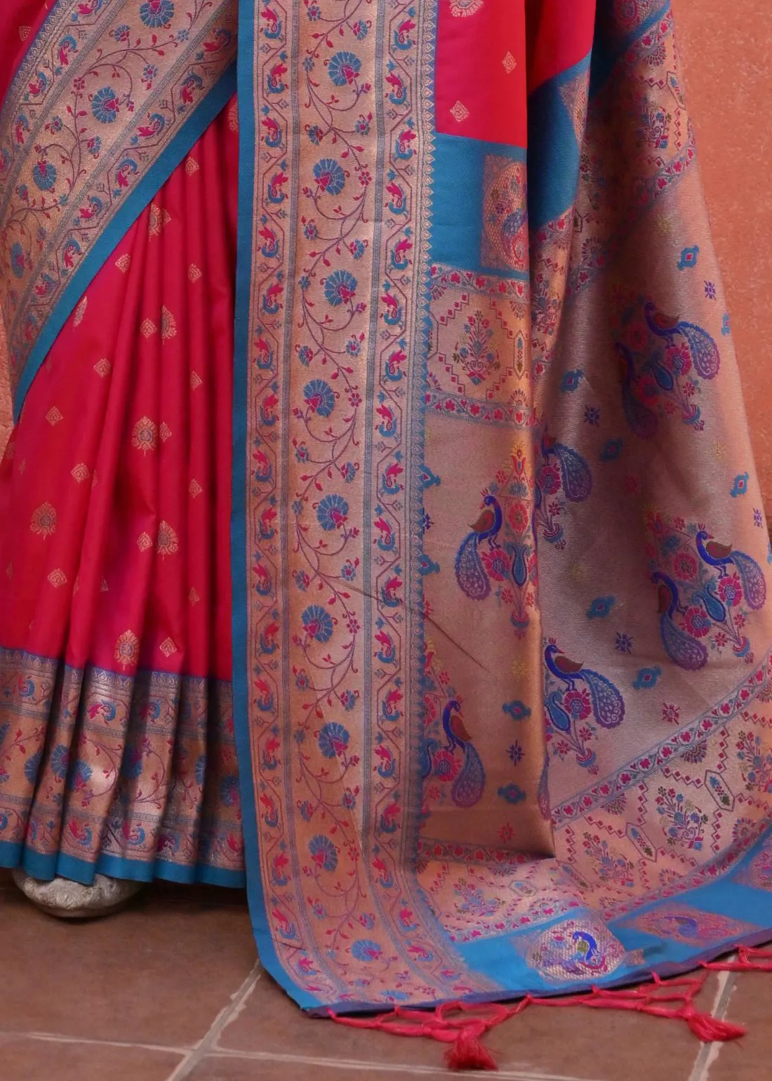 Rani Pink Paithani Silk Saree with Zari Woven Motifs
