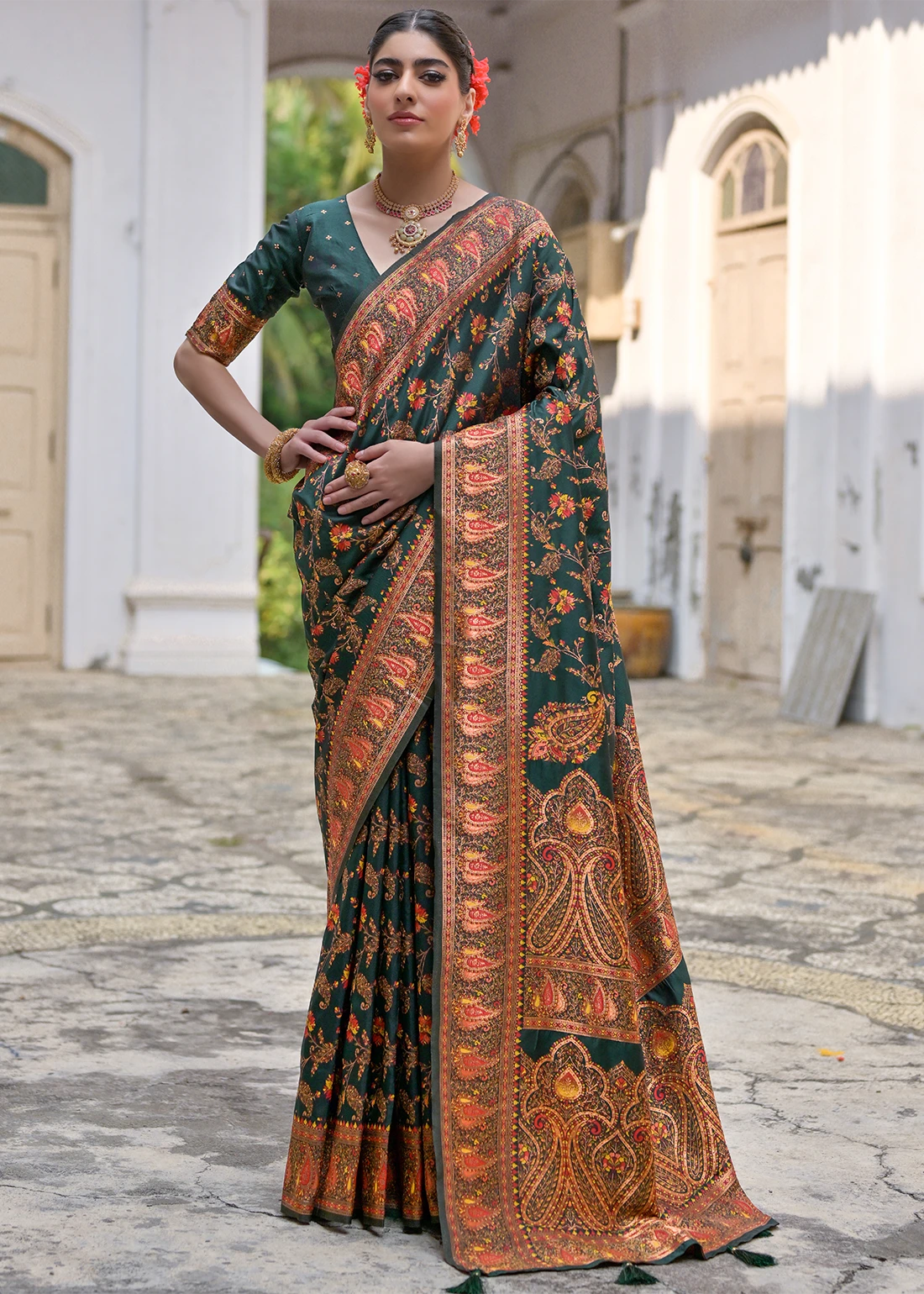 Jungle Green Kashmiri Jamawar Pashmina Saree