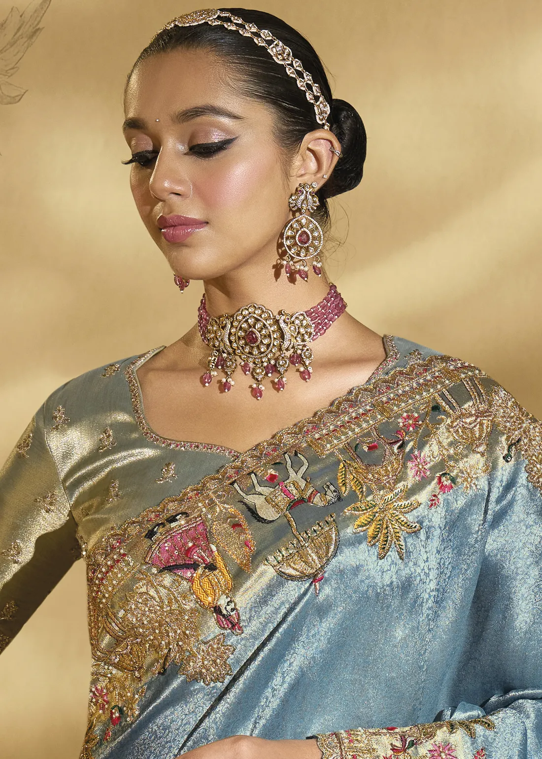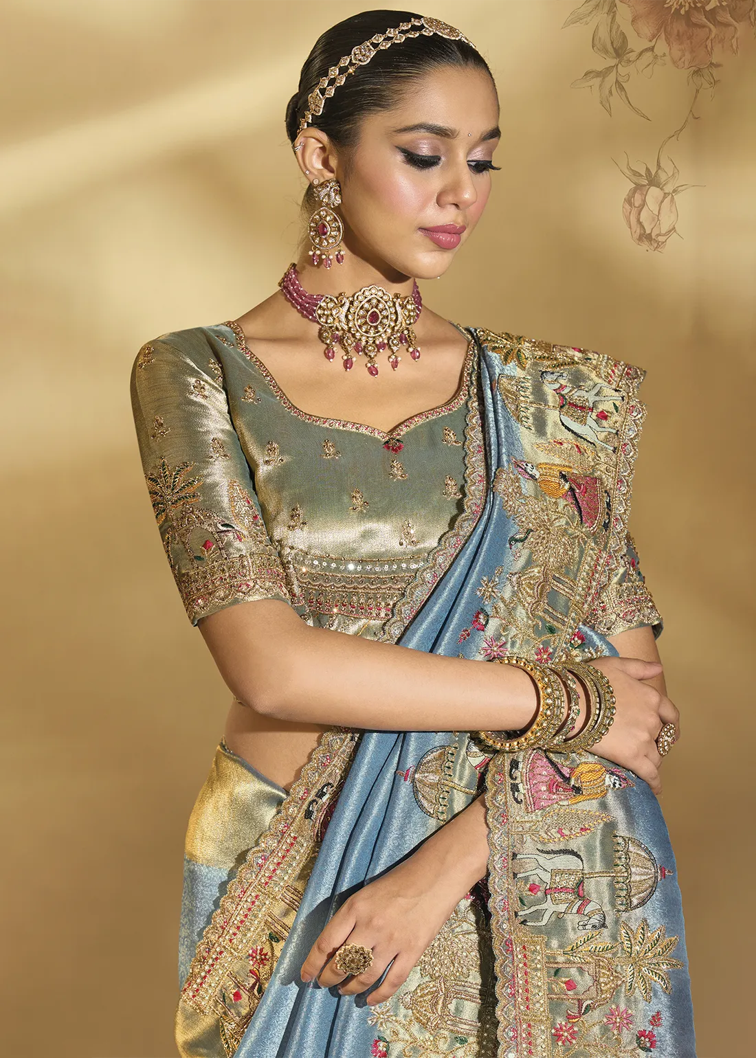 Pastel Blue Woven Banarasi Tissue Silk Saree
