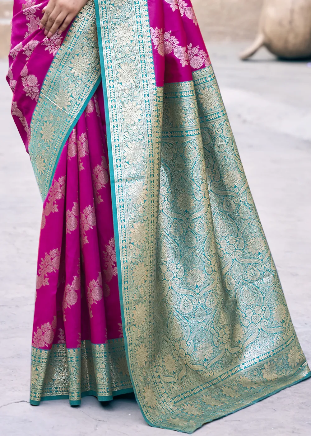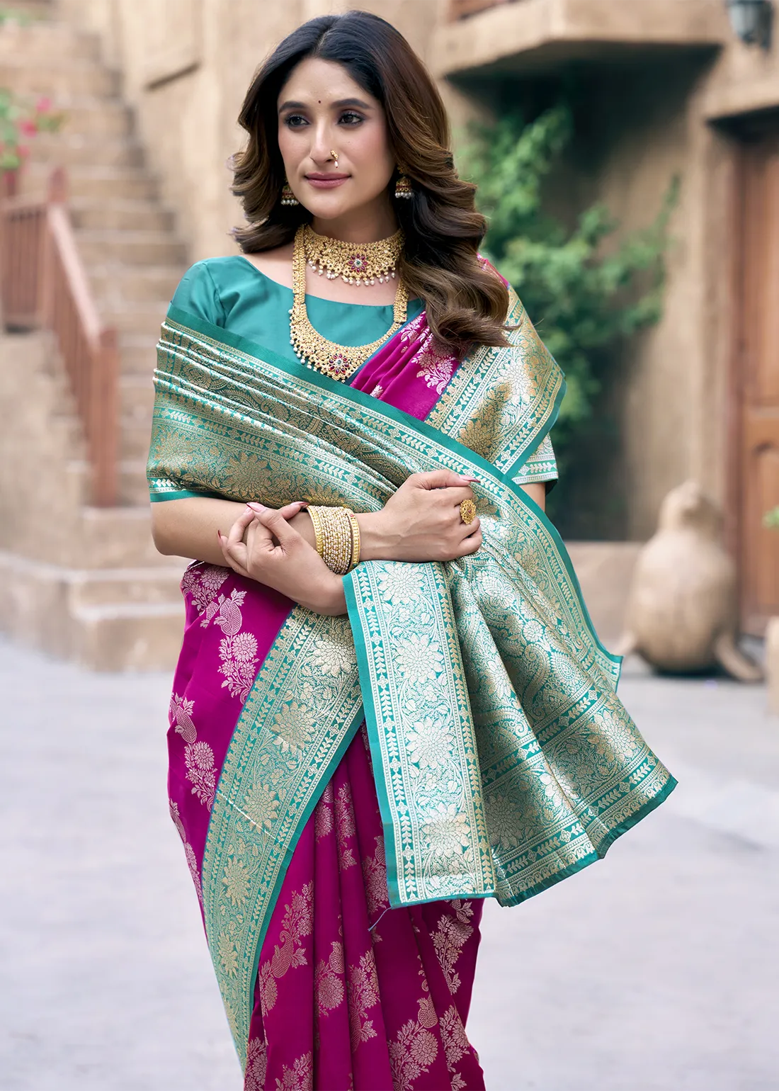 Magenta Meenakari Banarasi Saree with Contrast Blouse