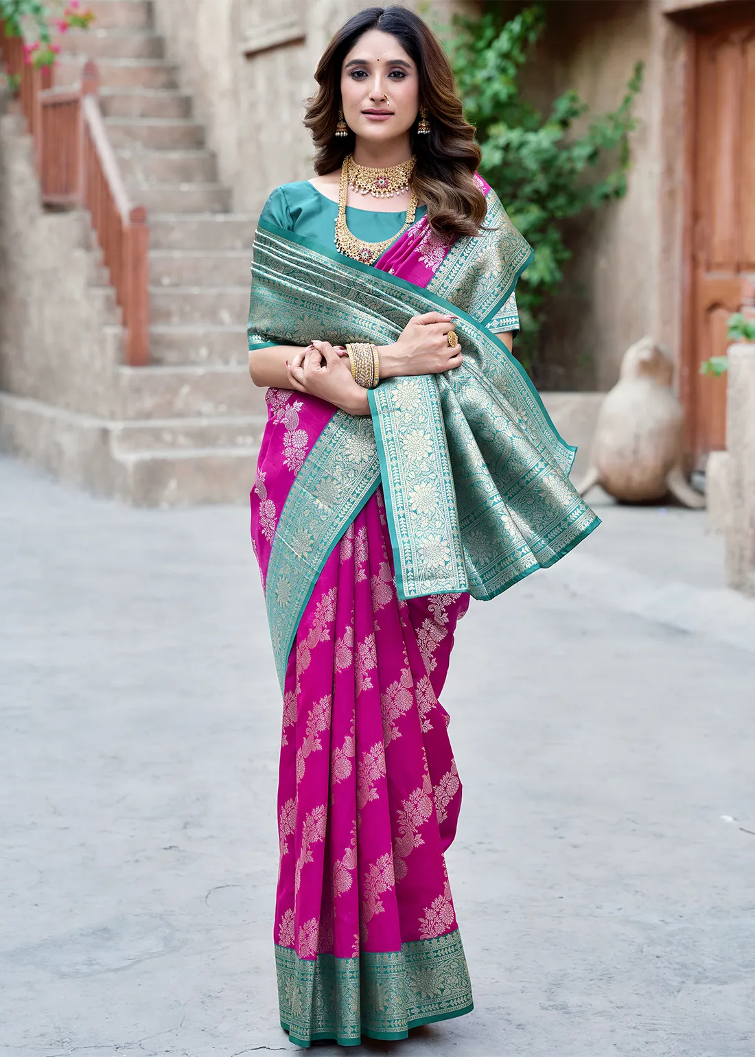 Magenta Banarasi Soft Silk Saree with Meenakari