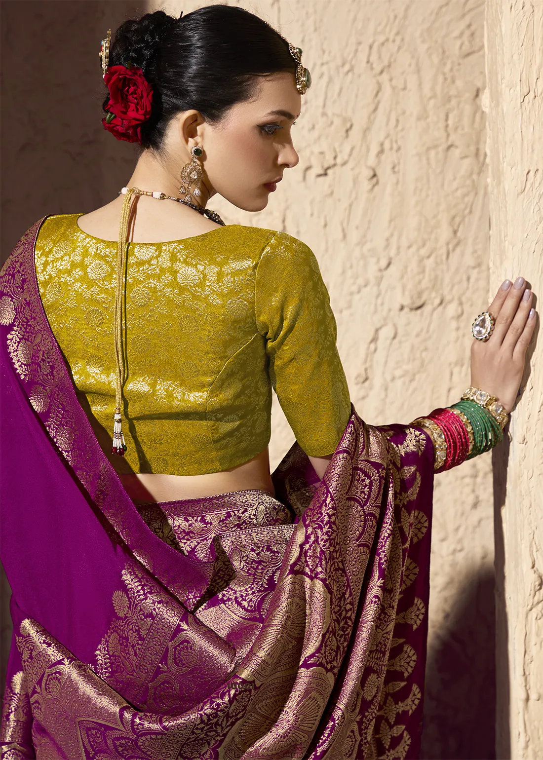 Magenta Banarasi Georgette Saree with Brocade Blouse