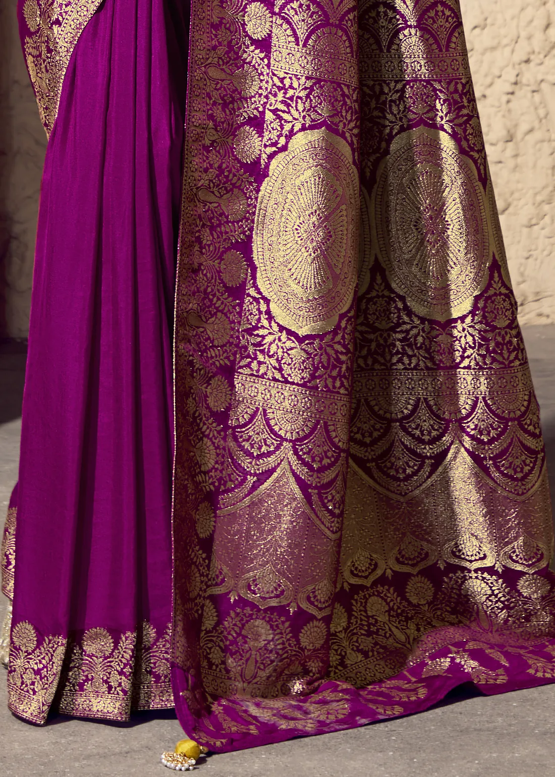 Ornamentation: Handmade heavy tassels on the pallu.