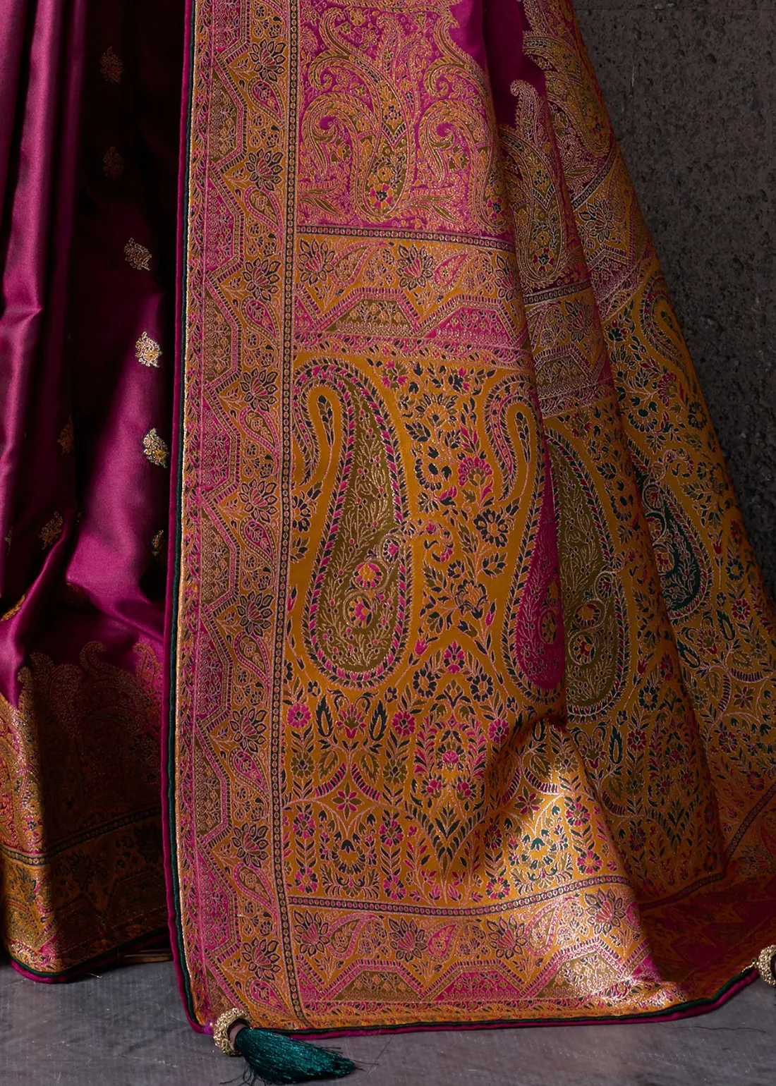 Magenta Satin Silk Banarasi Saree with Meenakari Work