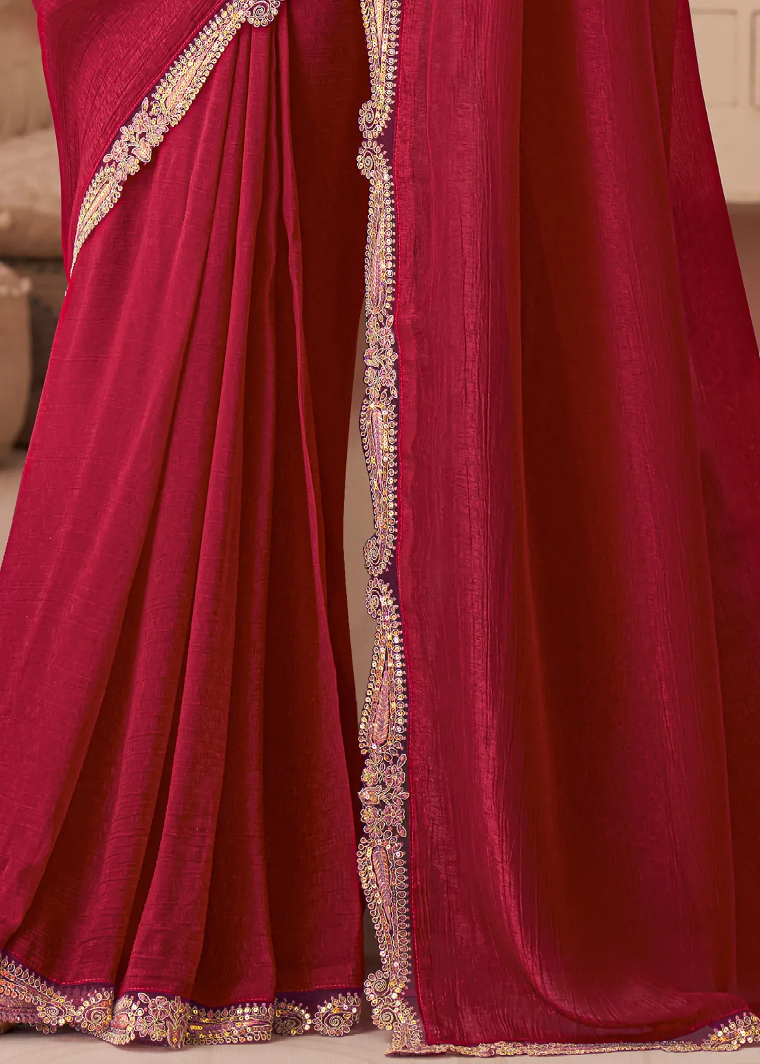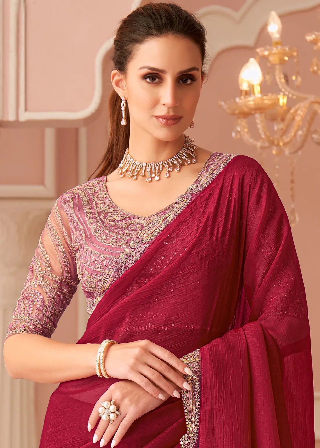 Maroon Embroidered Chiffon Saree with Embroidered Blouse