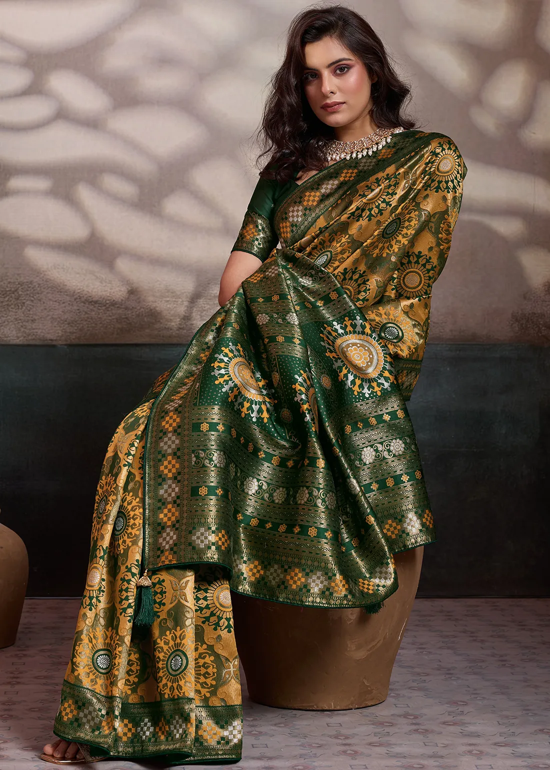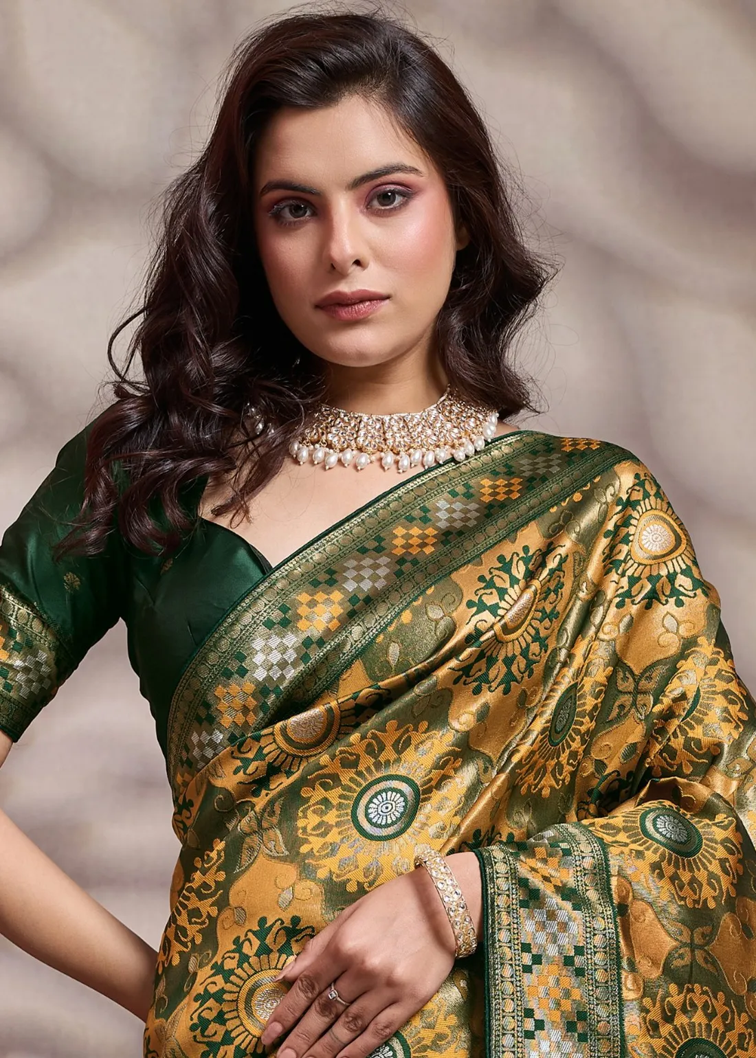 Mustard Yellow Dola Silk Banarasi Saree with Green Blouse