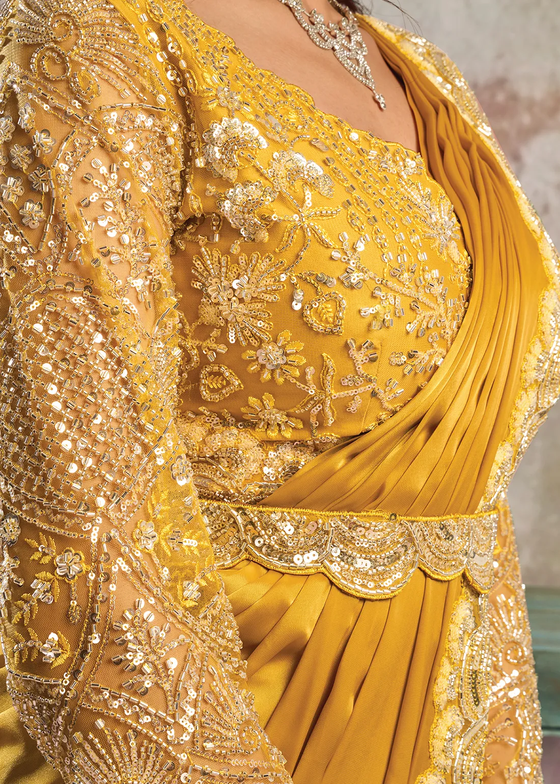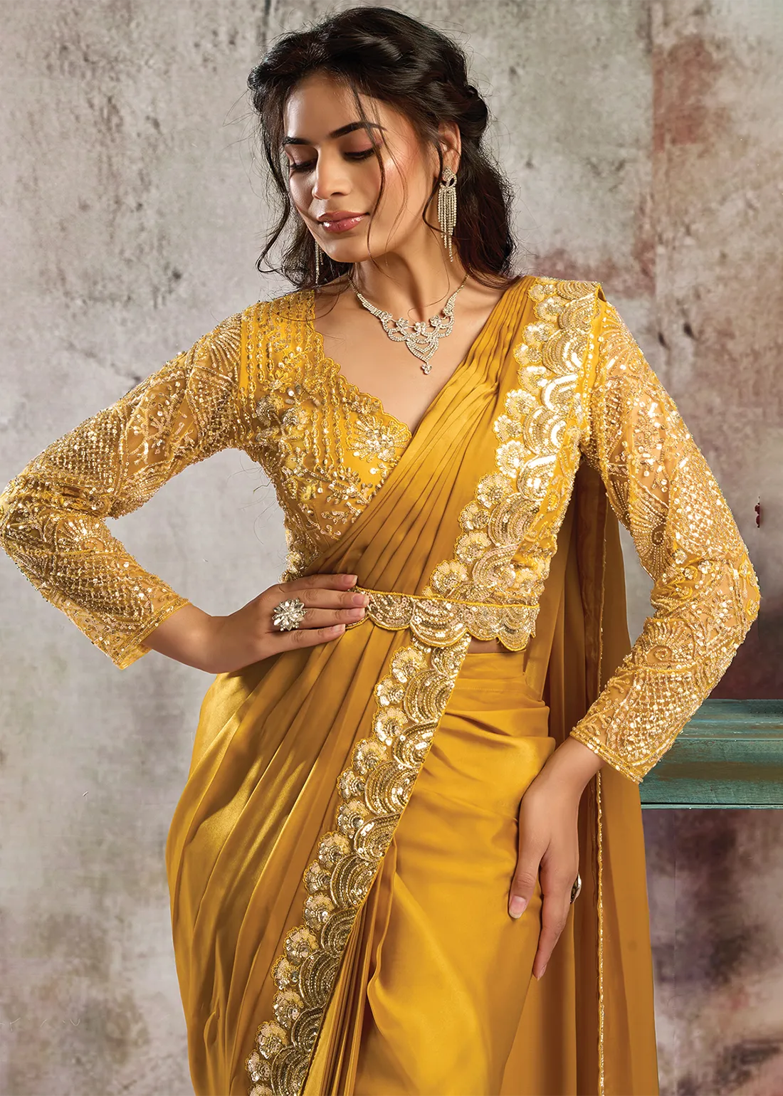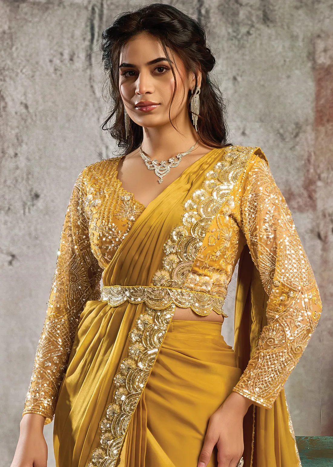 Mustard Yellow Ready to Wear Designer Saree with Belt