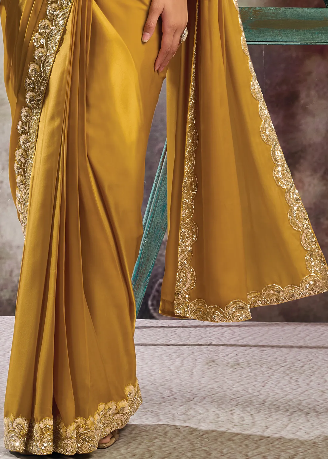 Golden Yellow Georgette Heavy Sequins Embroidery Saree
