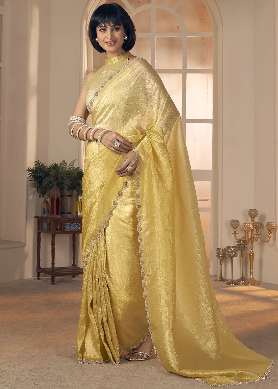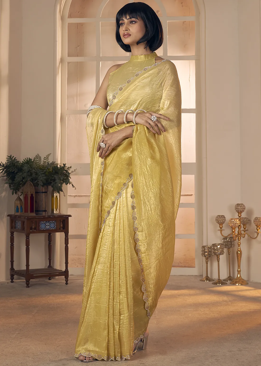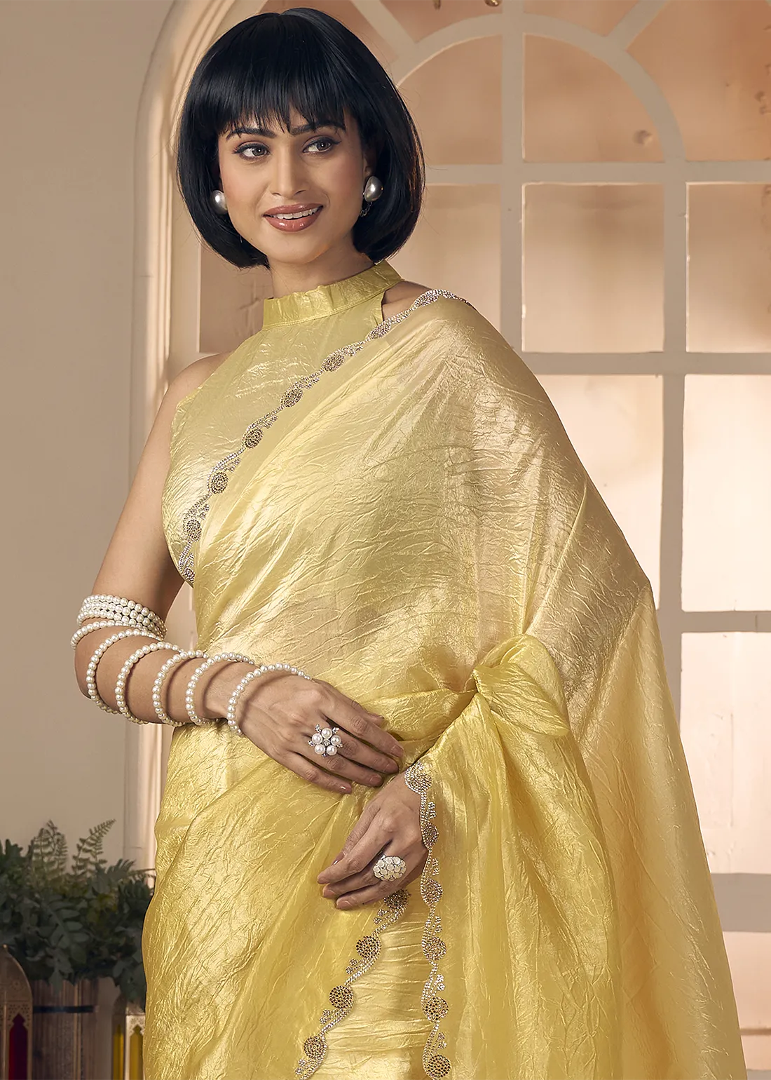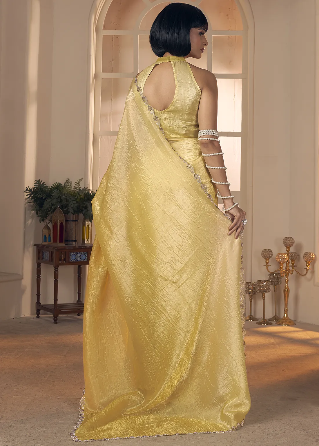 Ombré Yellow Tissue Silk Saree with Stone Work