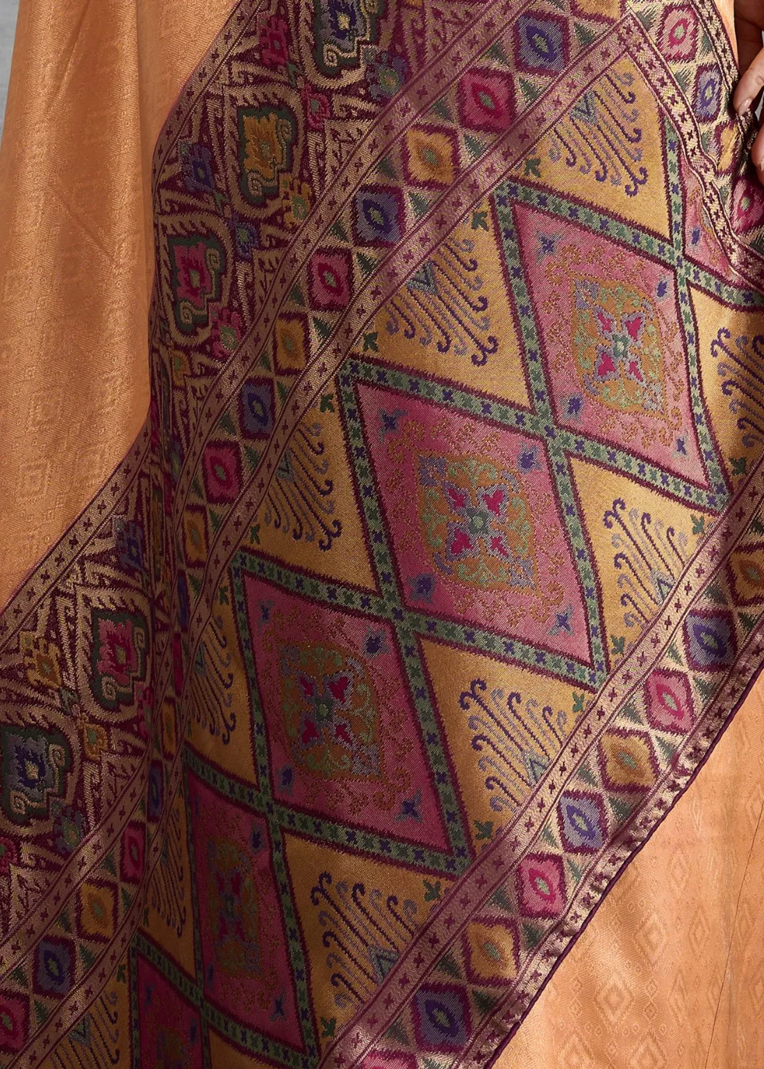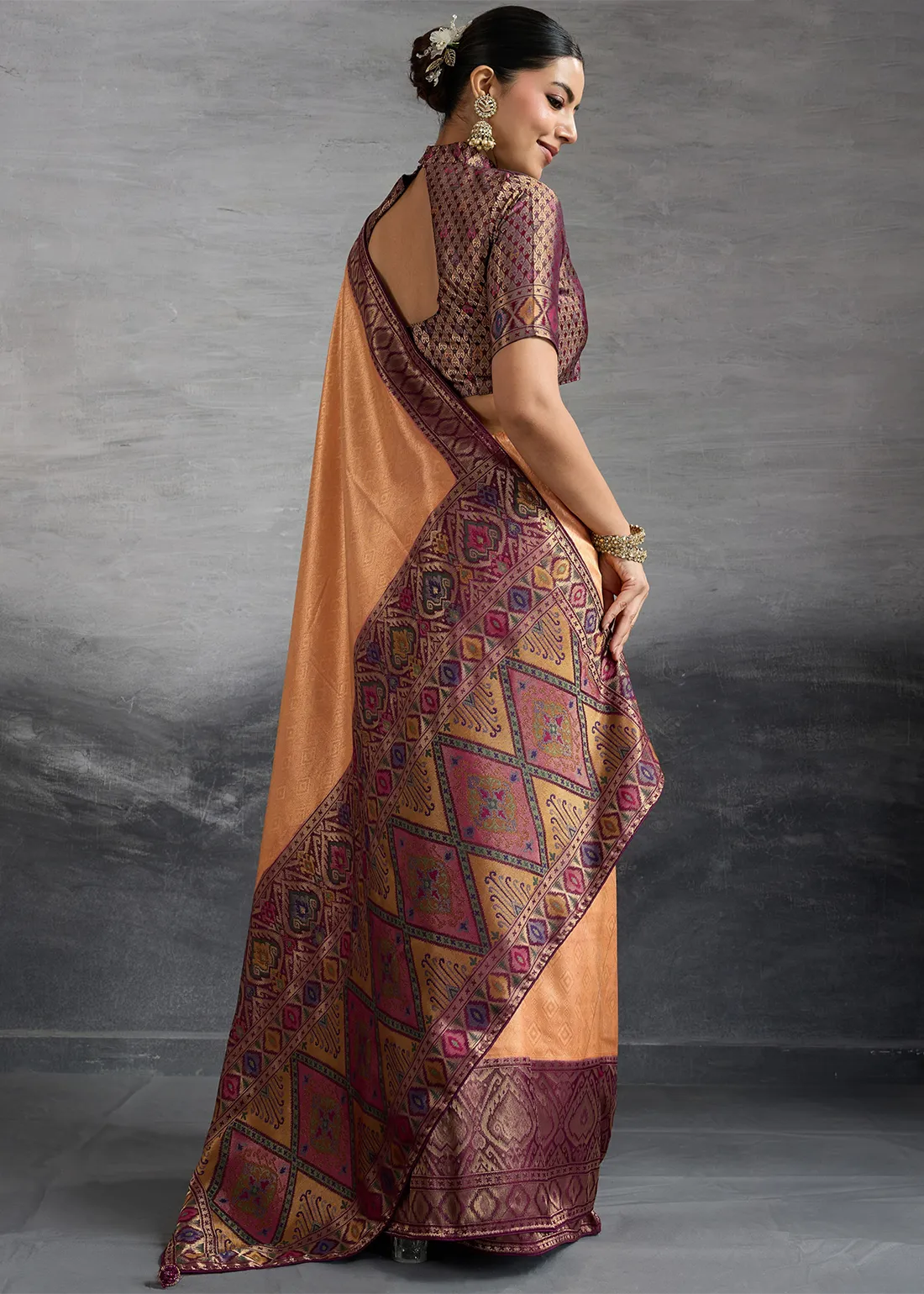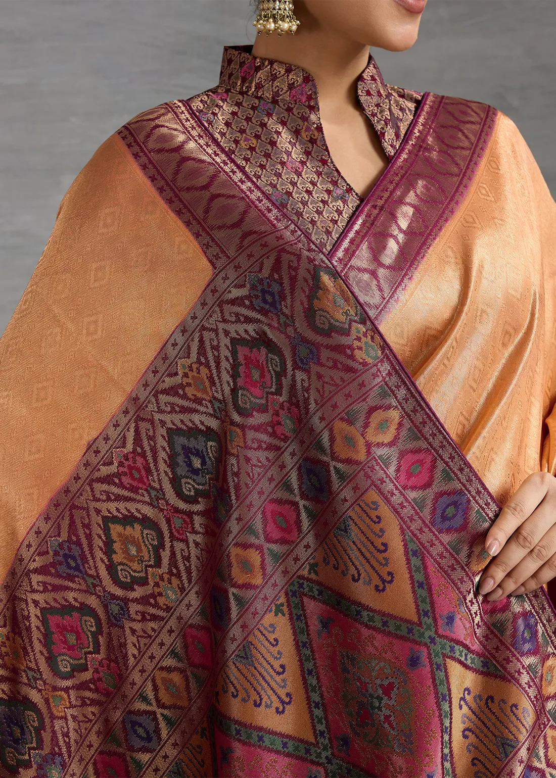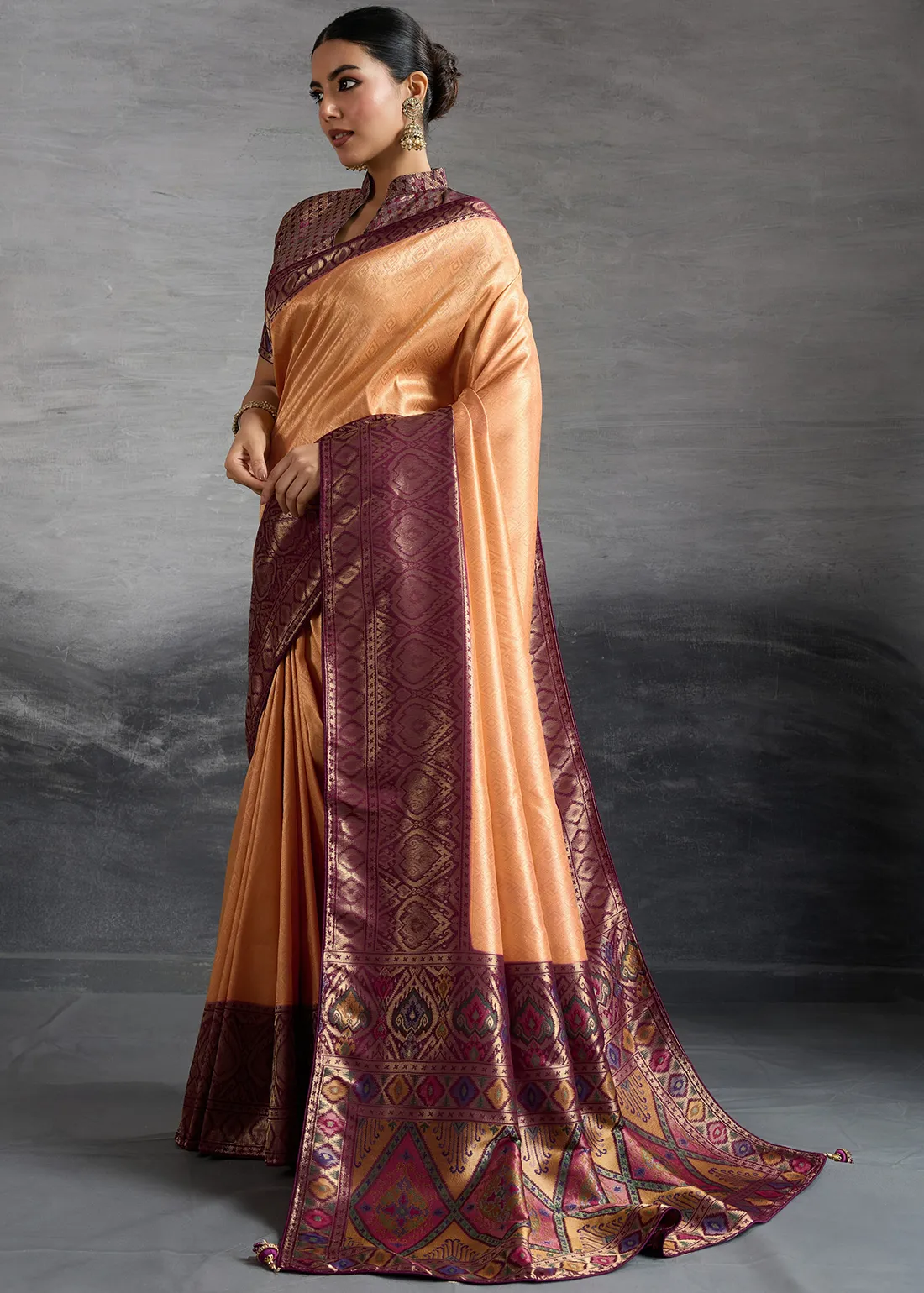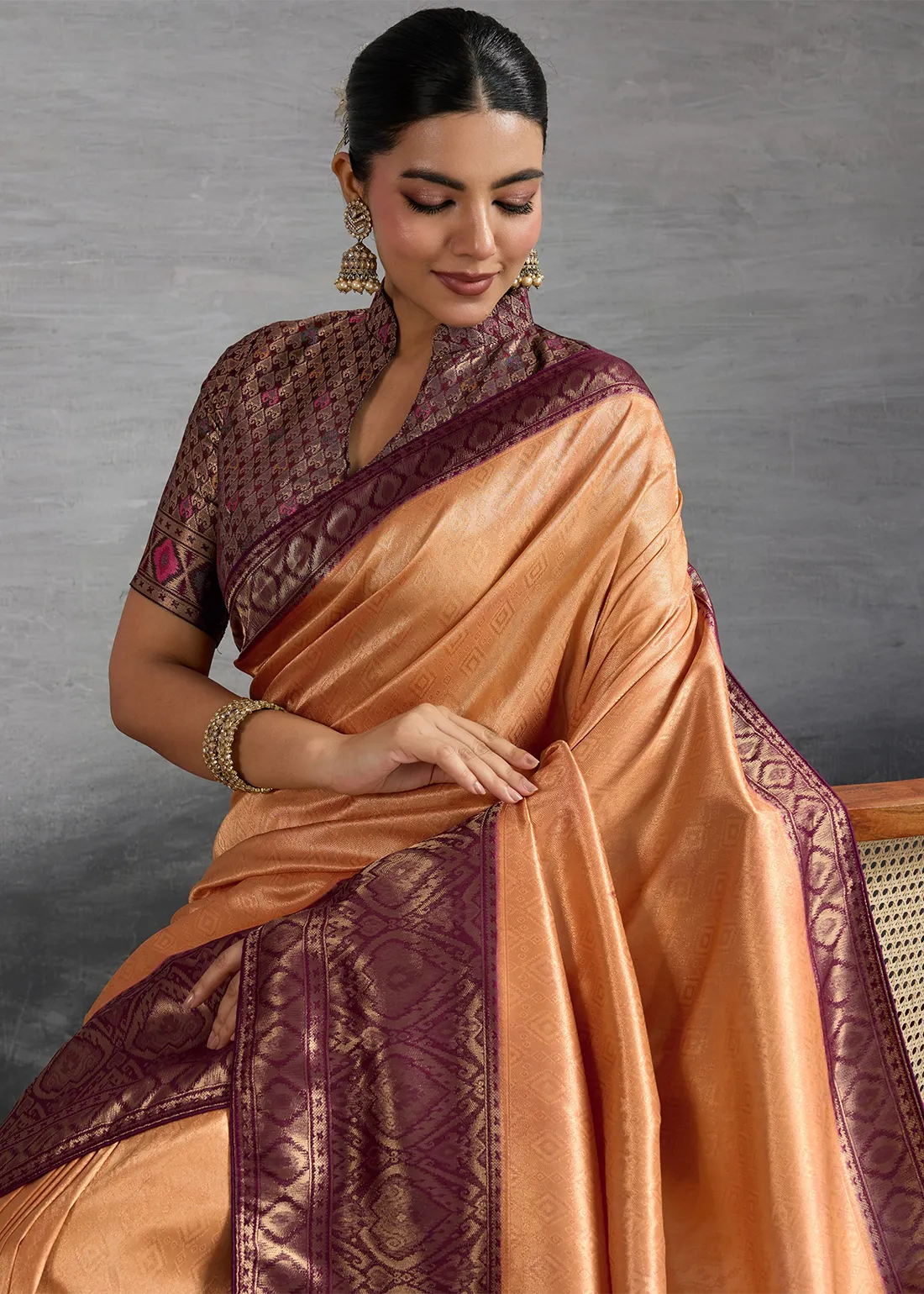Pale Orange Kanjivaram Silk Saree with Meenakari