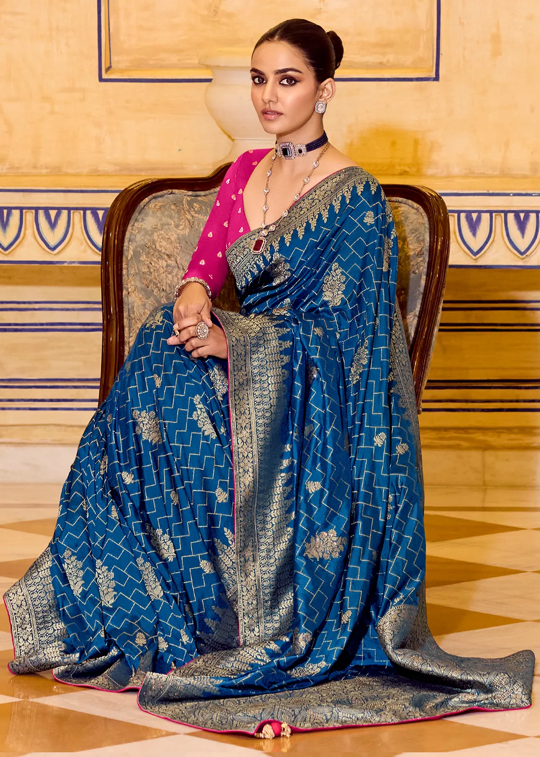 Dazzling Blue Dual Tone Banarasi Satin Silk Saree