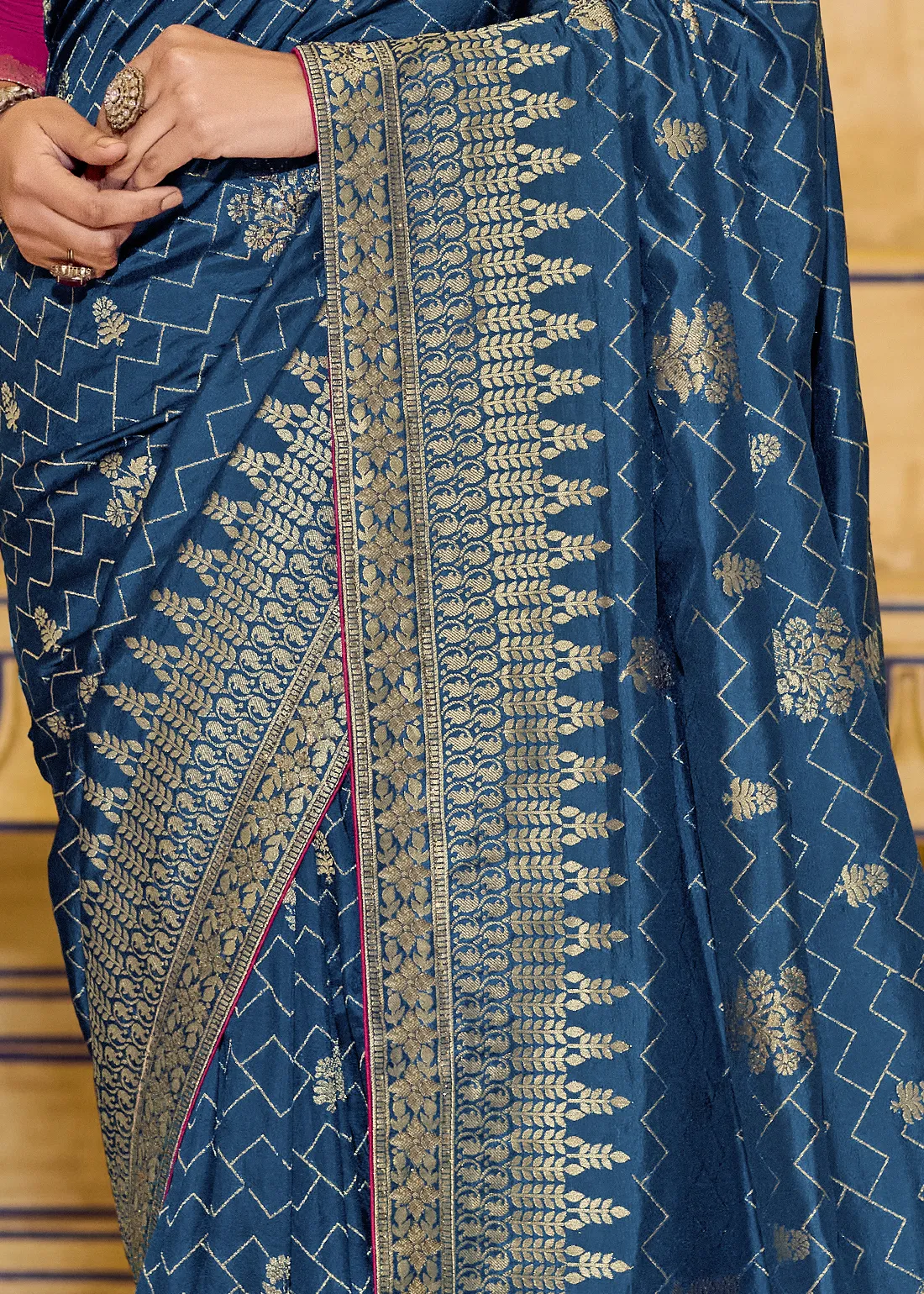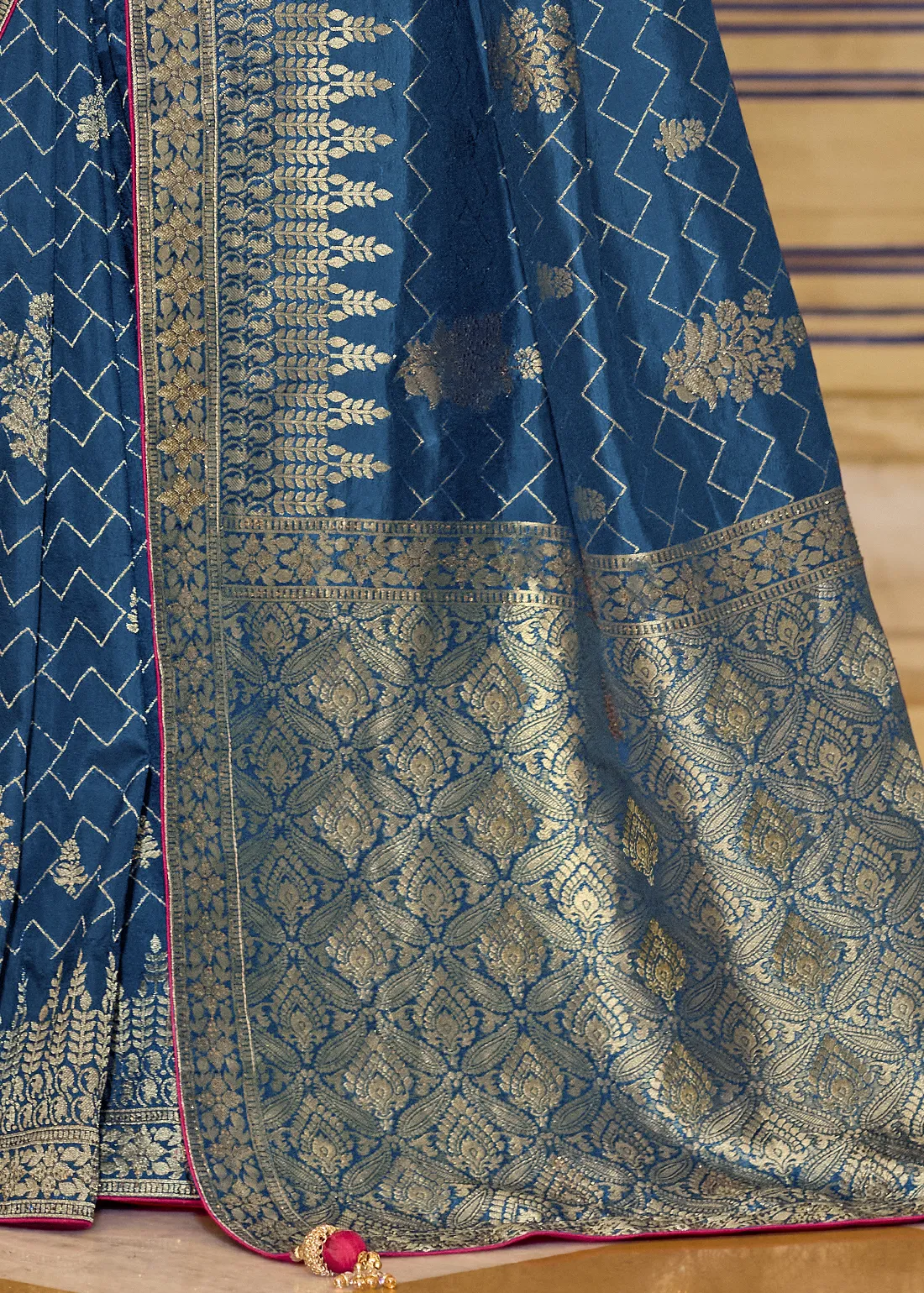 Peacock Blue Banarasi Silk Saree with Stone Work