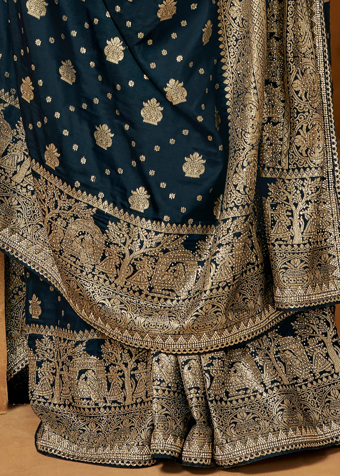 Peacock Blue Banarasi Silk Saree with Stone Work