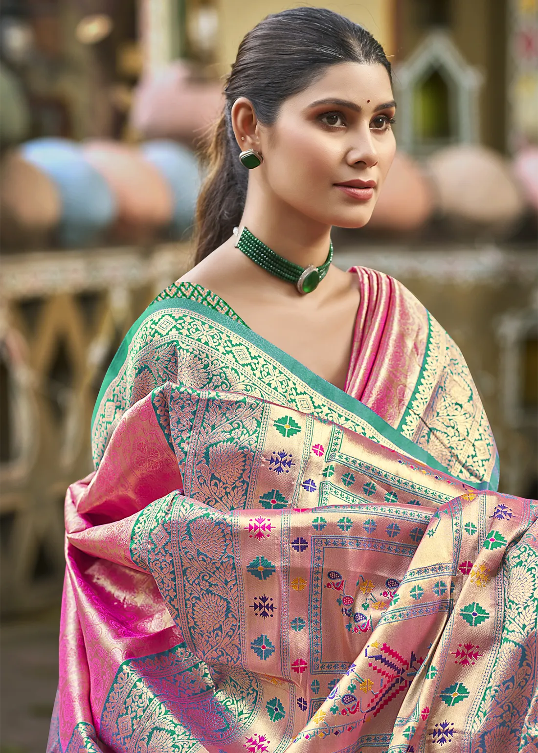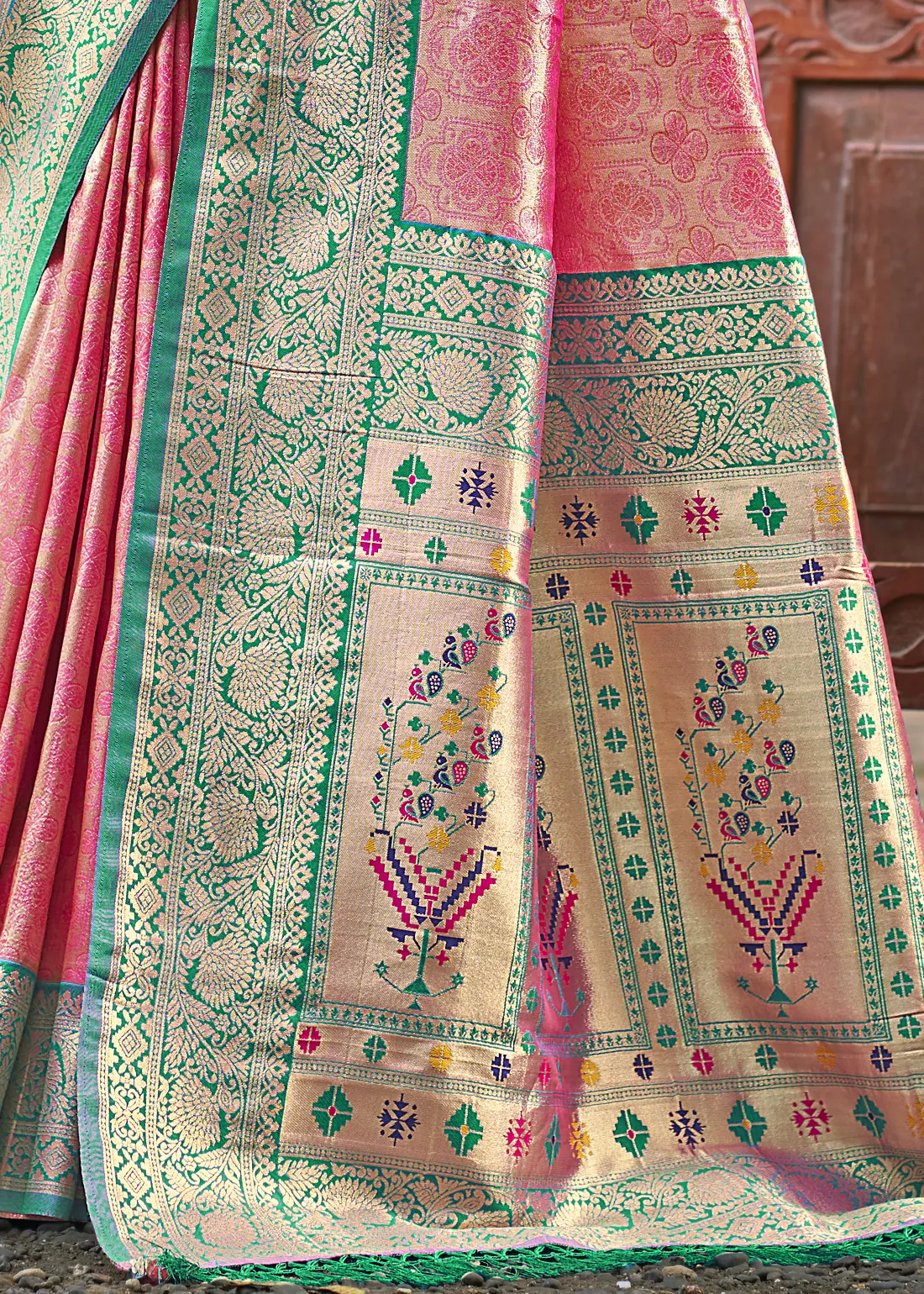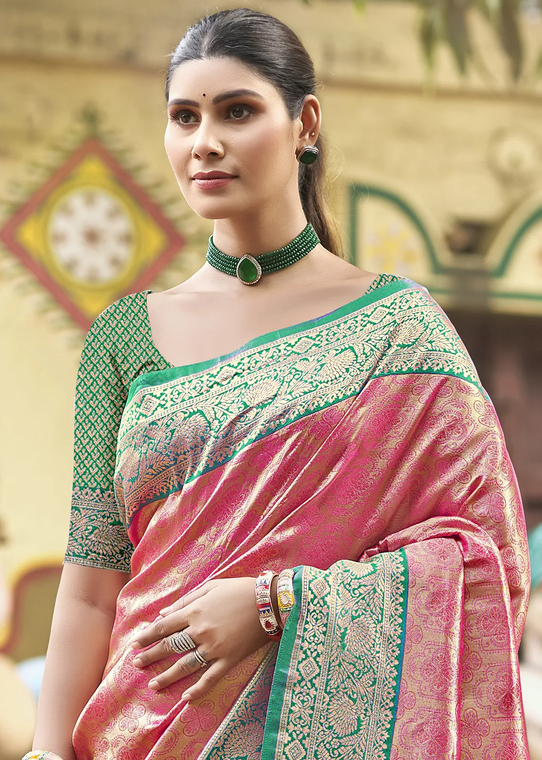 Rose Pink Kanjivaram Silk Saree with Meenakari