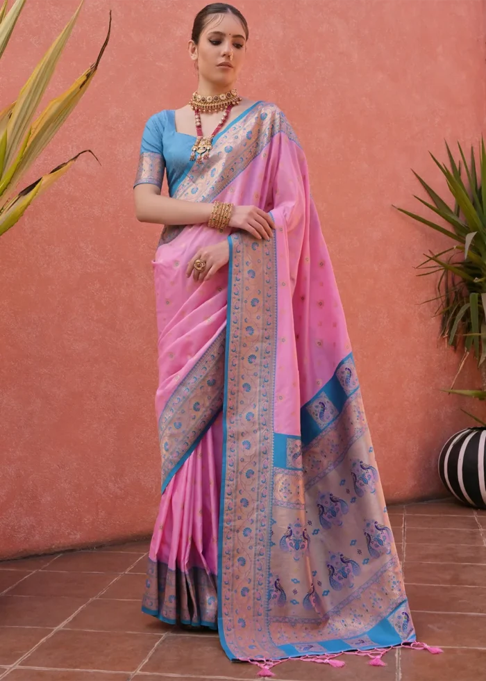 Baby Pink Paithani Silk Saree with Purple Blouse