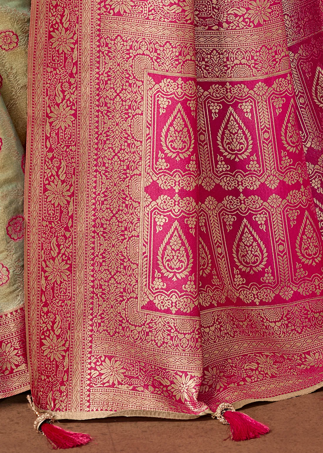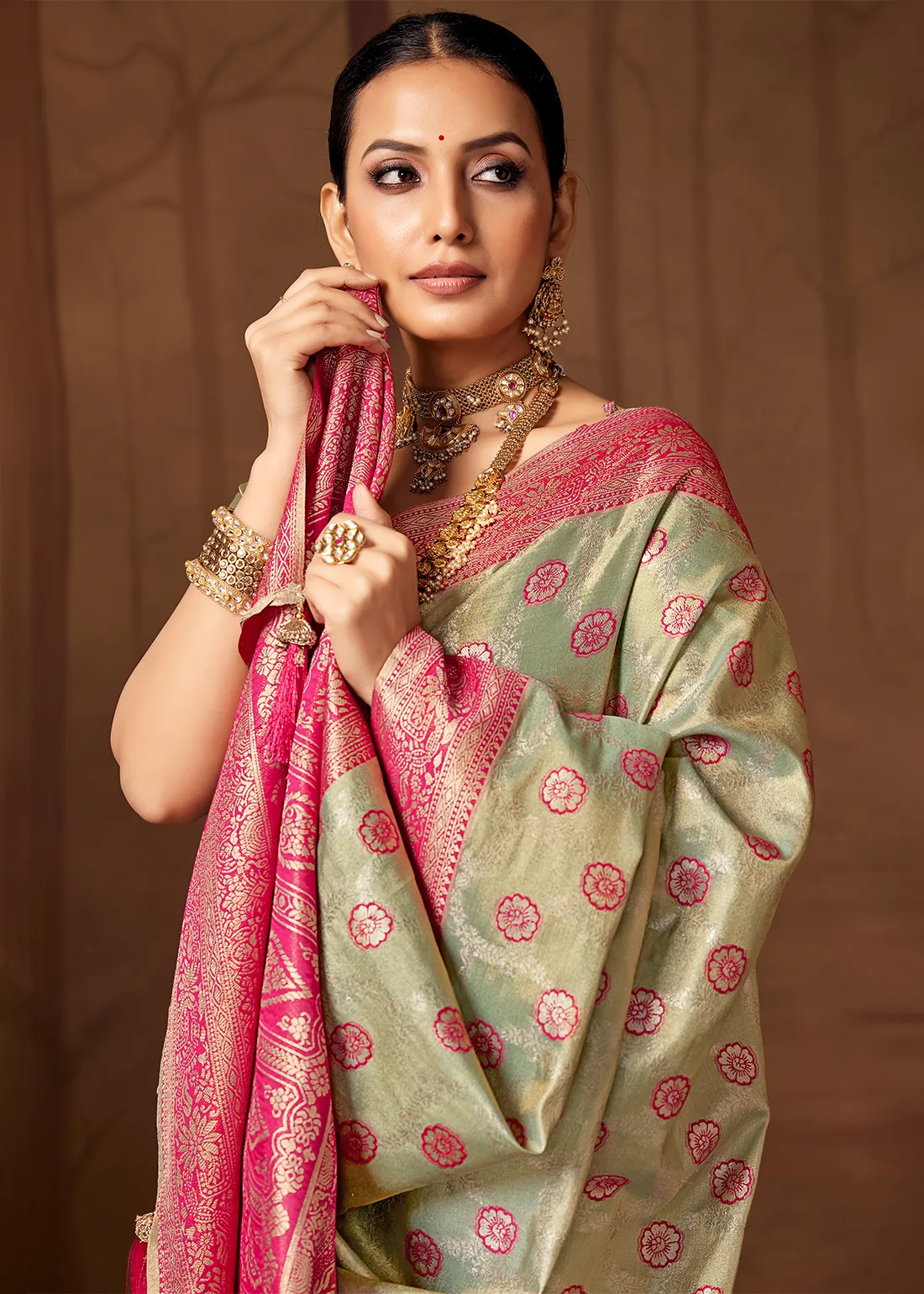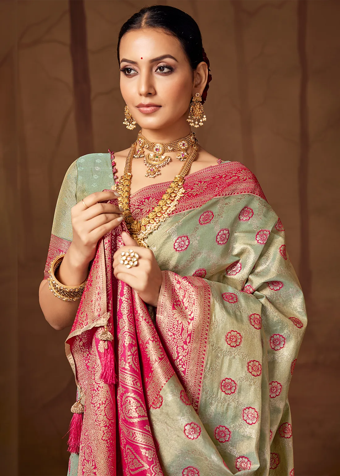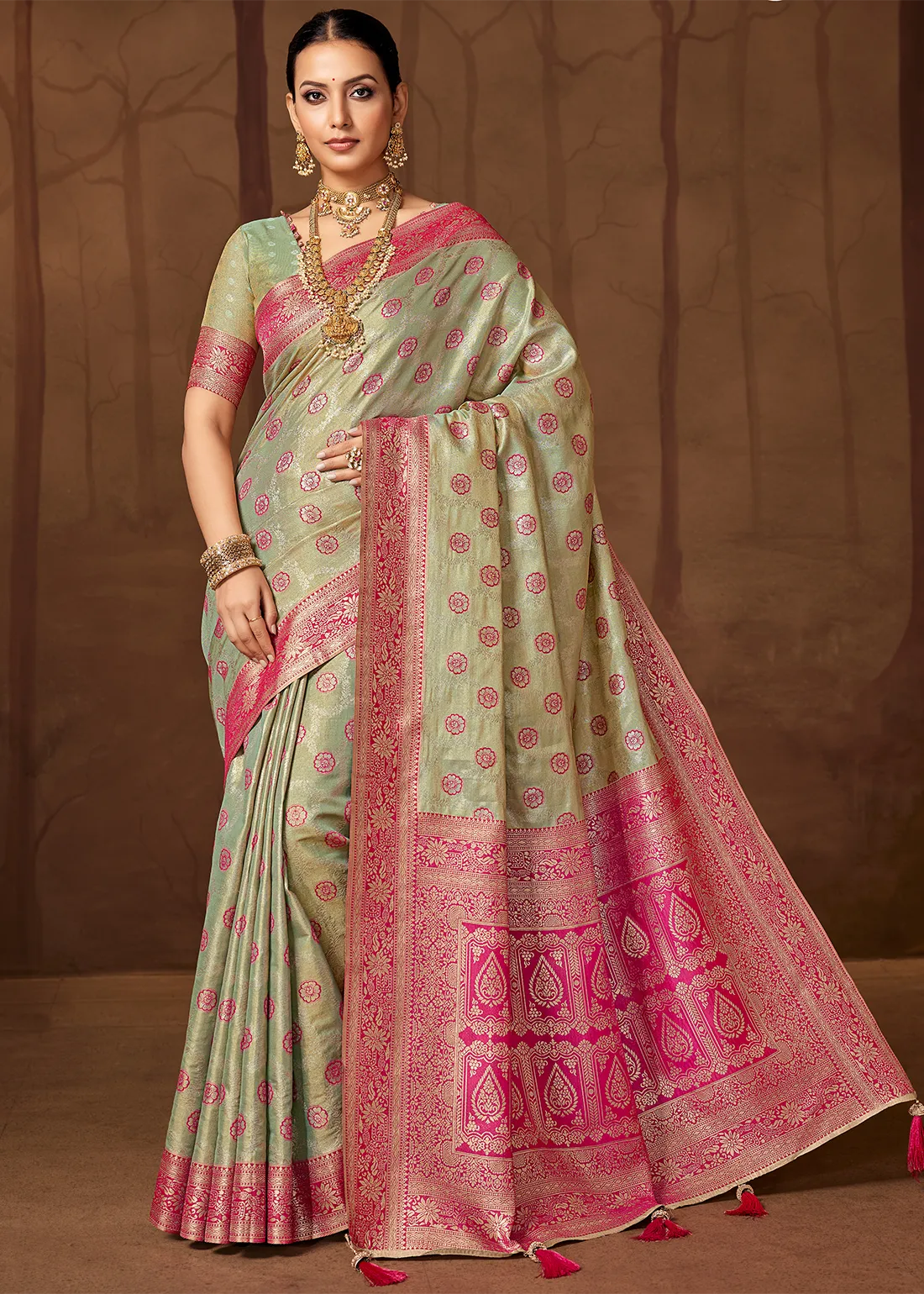 Pista Green & Pink Dual Colour Banarasi Saree with Brocade Blouse