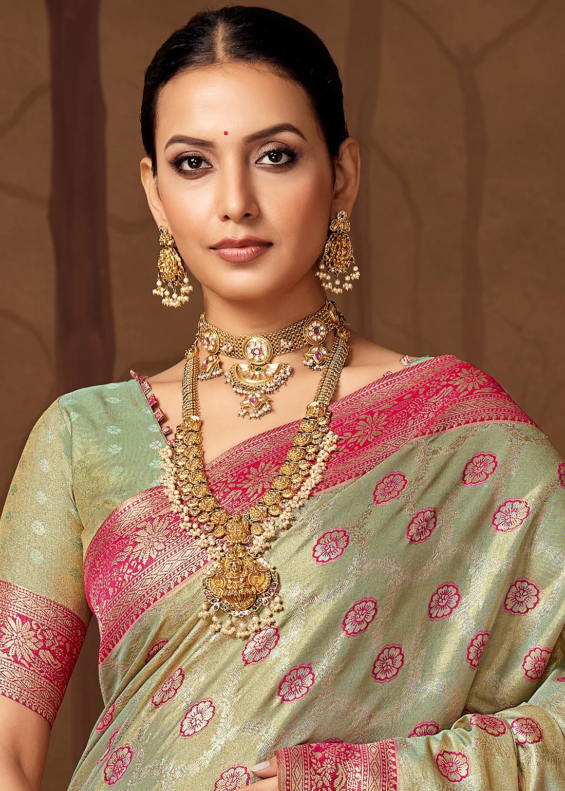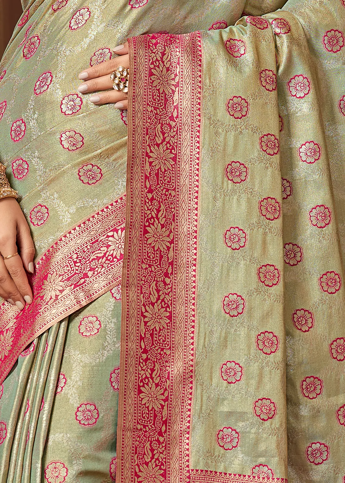Light Olive Green Banarasi Dola Silk Saree with Brocade Blouse