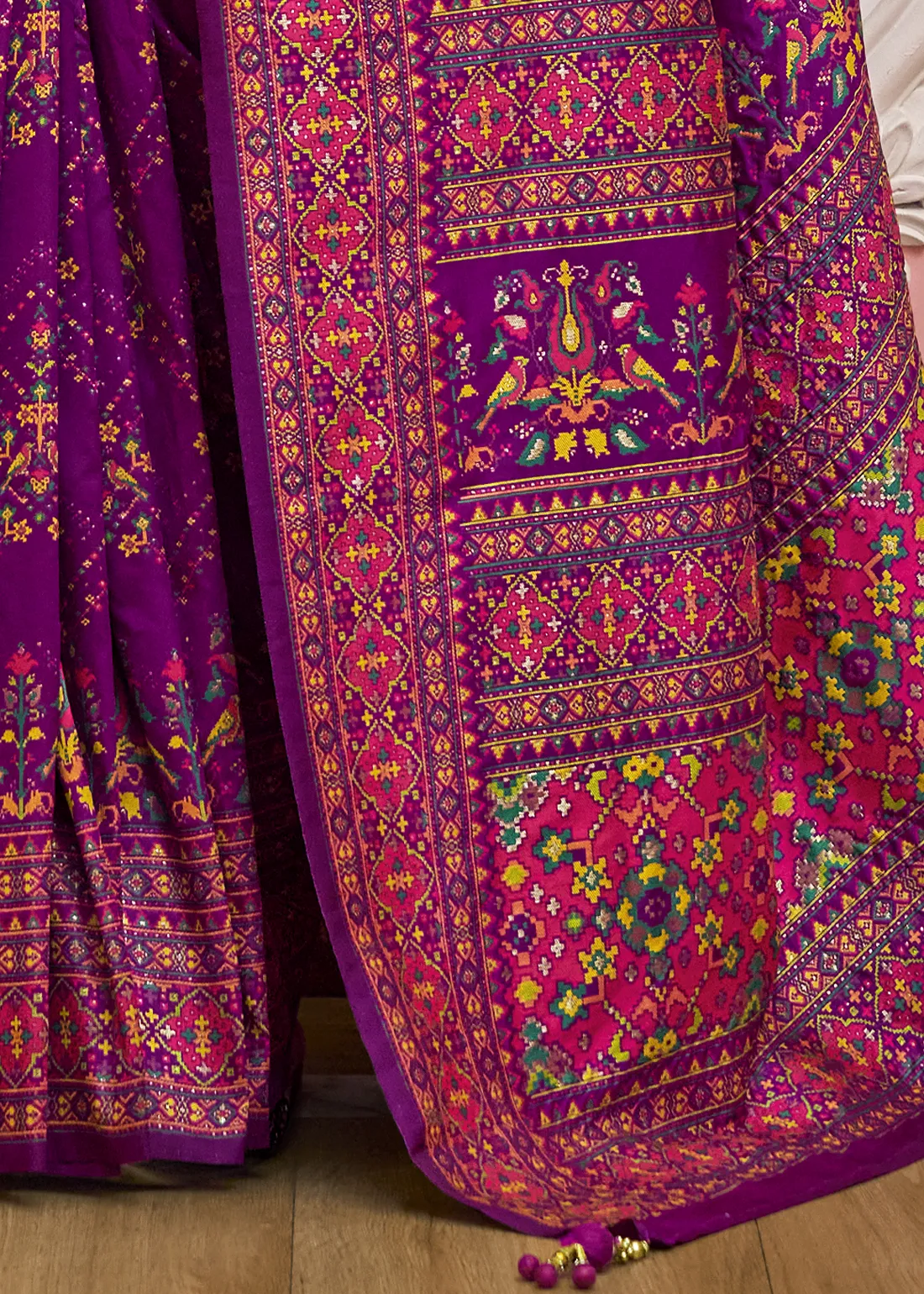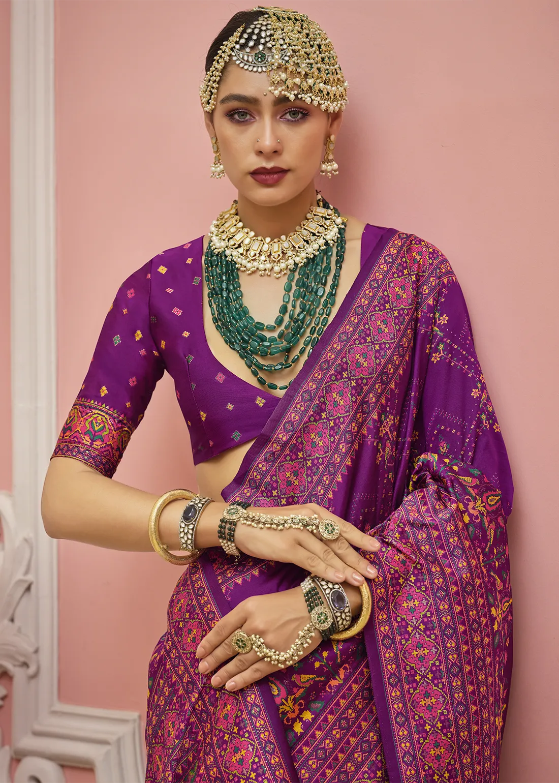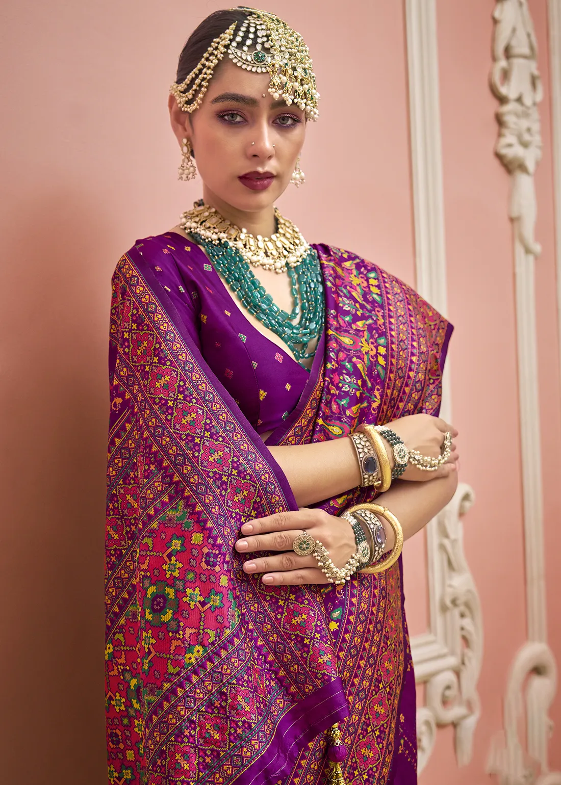 Saree: Adorned with intricately woven colourful Jamawar motifs, this Purple Kashmiri Jamawar Silk Saree is a tribute to the rich heritage of Kashmiri artistry, making it a treasured possession for generations to come. With its versatile drape, this saree beautifully complements any occasion, whether it’s a wedding celebration, a festive gathering, or a social event.