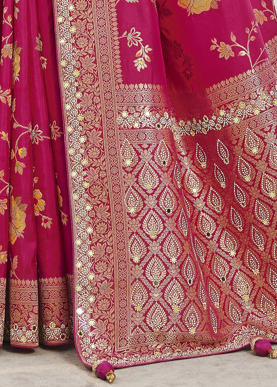 Rani Pink Banarasi Saree with Mirror Work