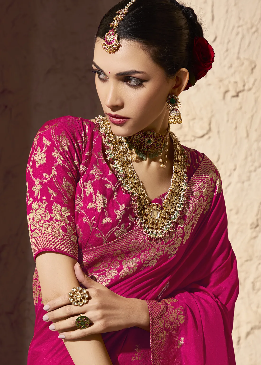 Fuchsia Pink Banarasi Organza Silk Saree