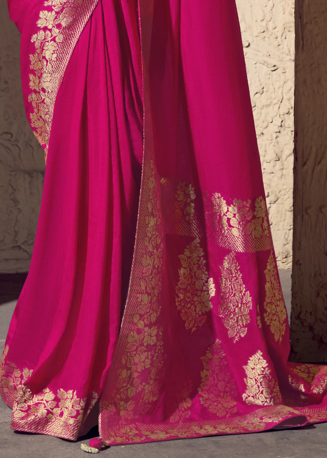 Rani Pink Georgette Banarasi Saree with Golden Zari
