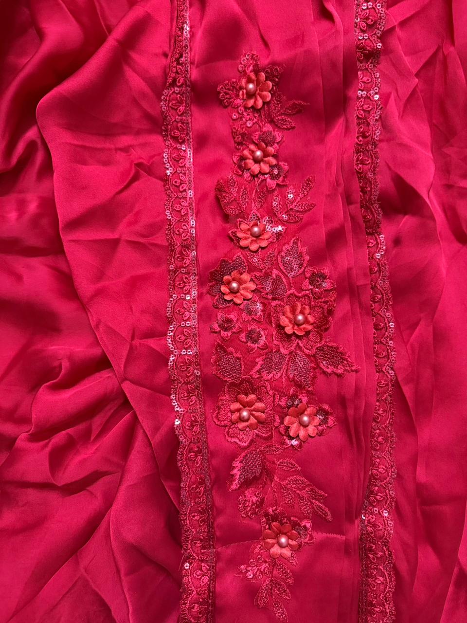 Saree: Embrace timeless elegance with this Red Ready to Wear Designer Saree featuring Resham, Cording and Sequins embroidery work along with beautiful handwork that adds a unique touch of craftsmanship to the saree. This beautifully crafted drape has a luxurious and royal appeal and looks captivating when worn. Whether you’re attending a wedding, a party, or any other grand event, this Designer Saree promises to turn heads and make you a vision of grace and sophisticated beauty.