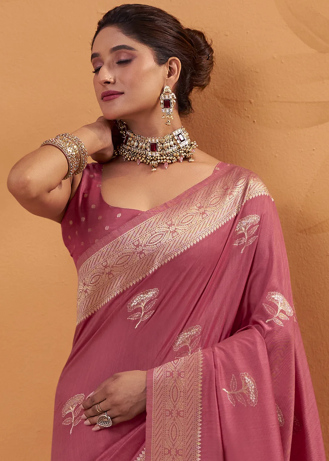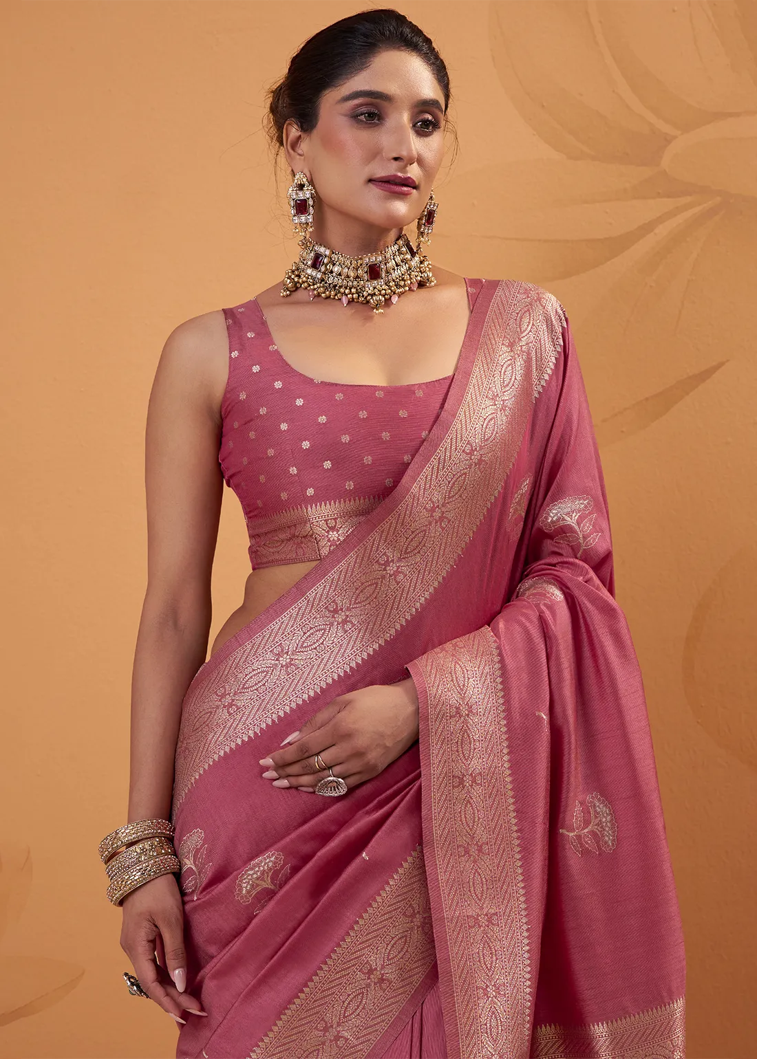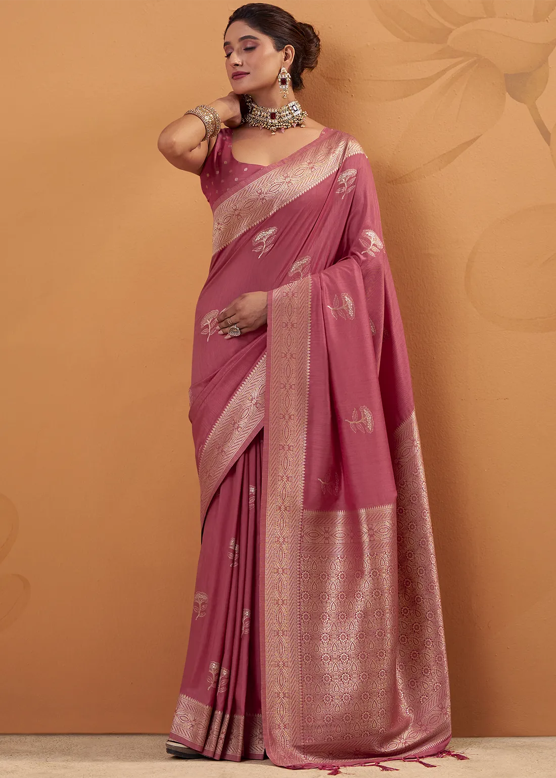 Rose Mauve Tussar Silk Banarasi Saree with Intricate Zari Weaving